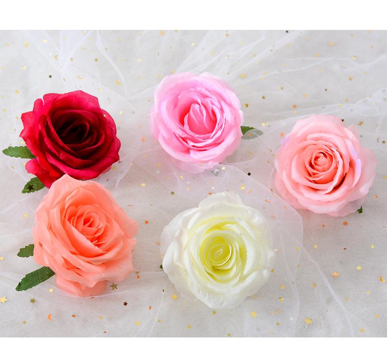 Cabeza de rosa de simulación, tela de seda, decoración de flores falsas, fondo de pared de flores de boda, accesorios de arreglo floral, bricolaje, una sola rosa