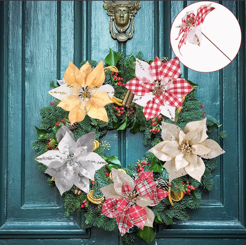 Nuevas flores de Navidad de Amazon, flores de simulación, decoraciones navideñas, coronas para árbol de Navidad, flores decorativas de Navidad DIY.
