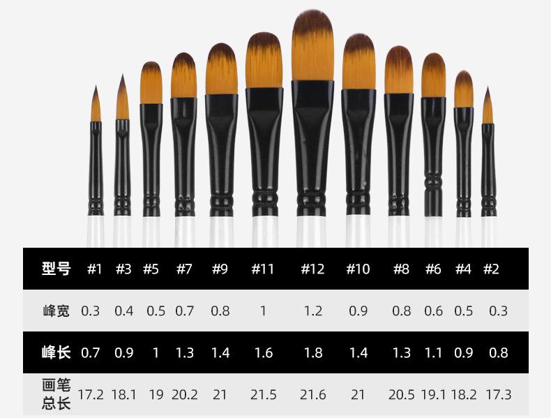 Set de Pintura de 12 Pinceles de Nylon de Pelo Blanco de Venta Caliente Transfronterizo Acrílico Óleo Pincel Estudiante de Arte Pintura Pluma Mayorista