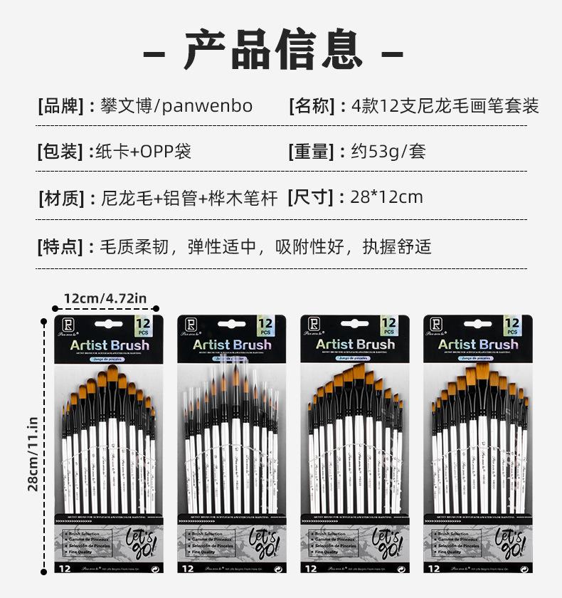 Compra Set de Pintura de 12 Pinceles de Nylon de Pelo Blanco de Venta Caliente Transfronterizo Acrílico Óleo Pincel Estudiante de Arte Pintura Pluma Mayorista al por mayor en Joom.pro