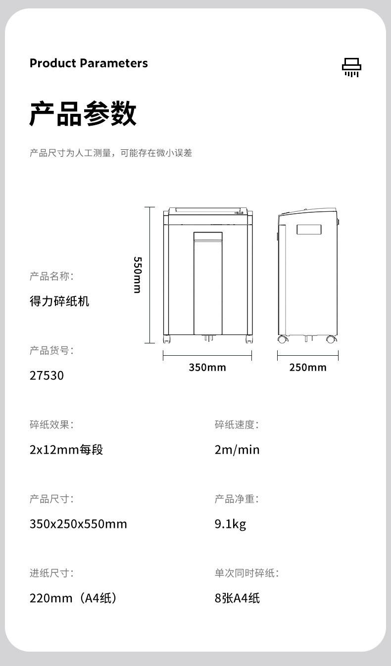 Destructora de papel Deli 27530, trituradora de papel automática para oficina, granular, comercial, archivador, hogar, mini trituradora pequeña
