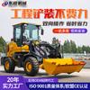 Cargadora de horquilla original con tracción en las cuatro ruedas, pequeña, multifuncional, para ingeniería de edificios, cargadora de dirección deslizante hidráulica con pinza para madera