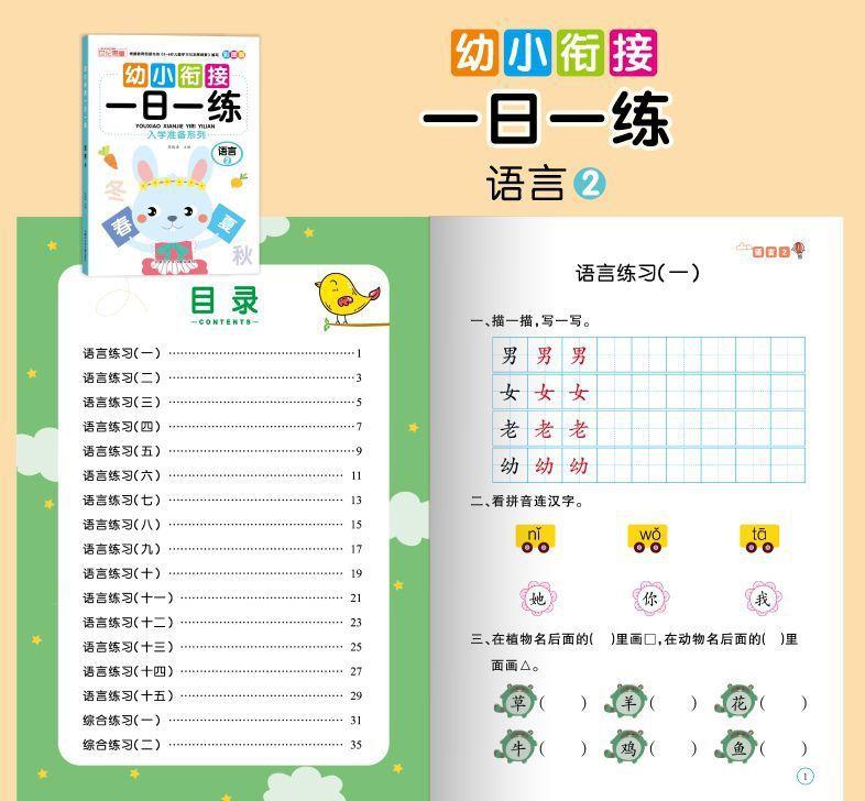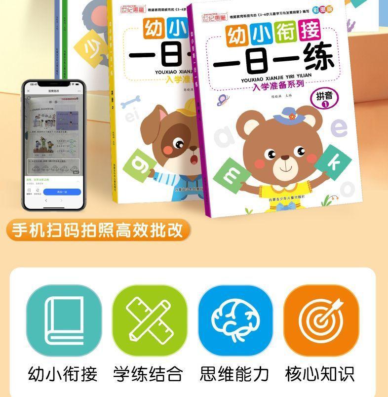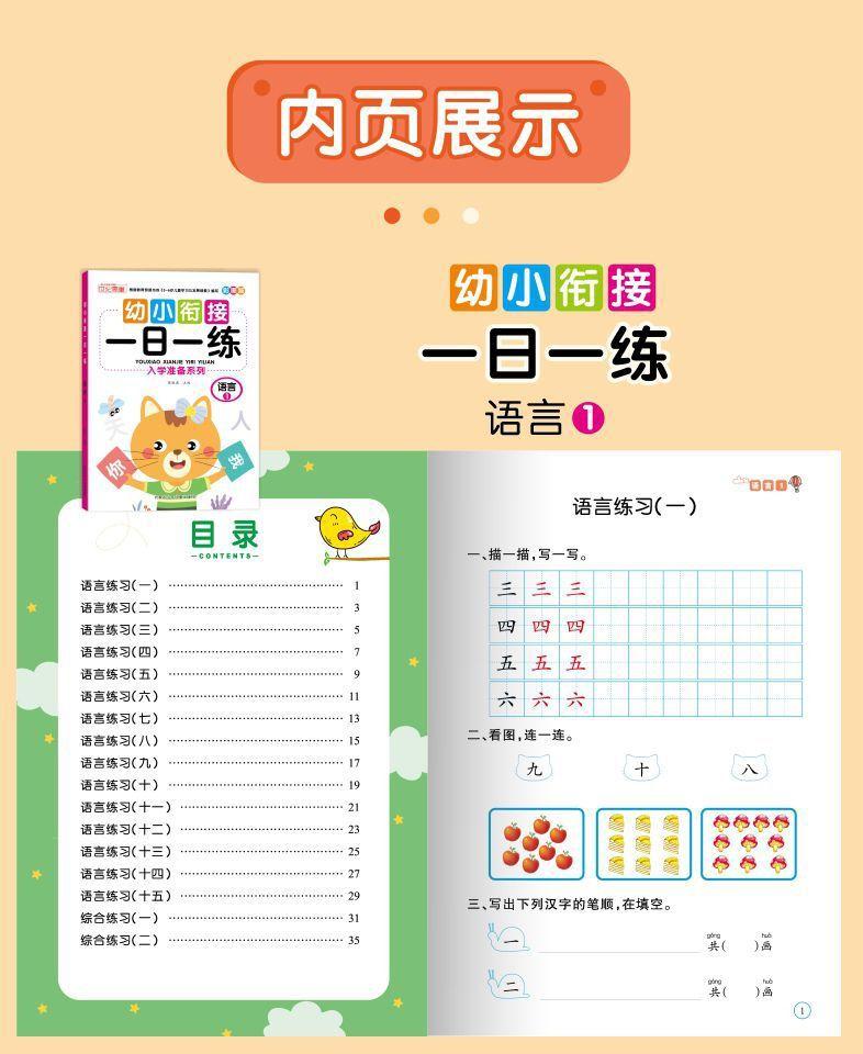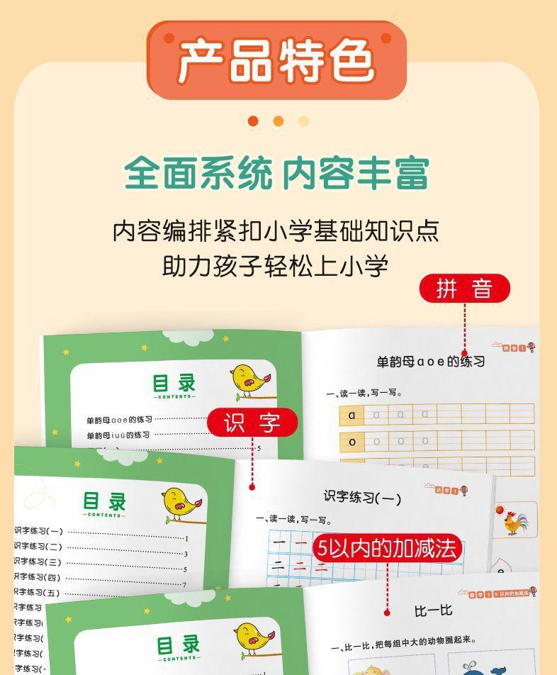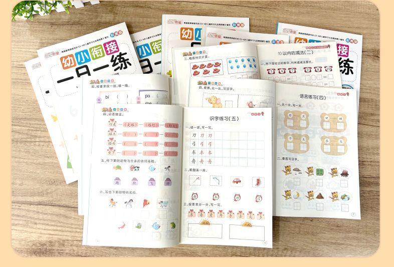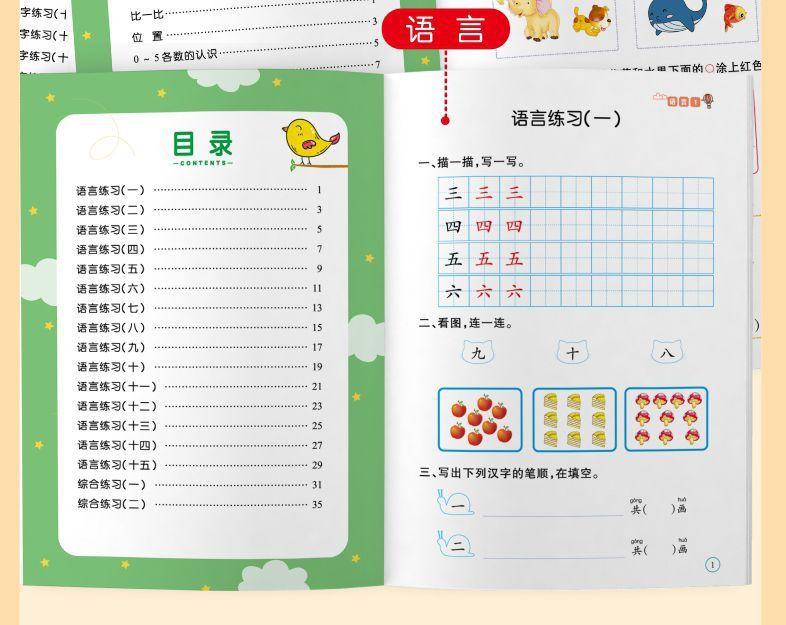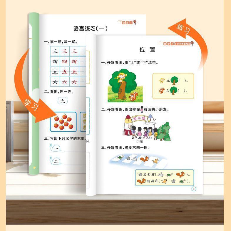 Materiales didácticos integrados para preescolar, lengua, pinyin, matemáticas, alfabetización y matemáticas para jardín de infantes.