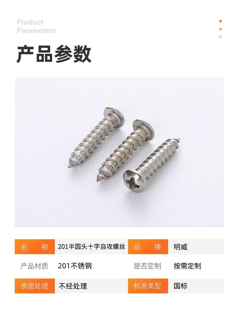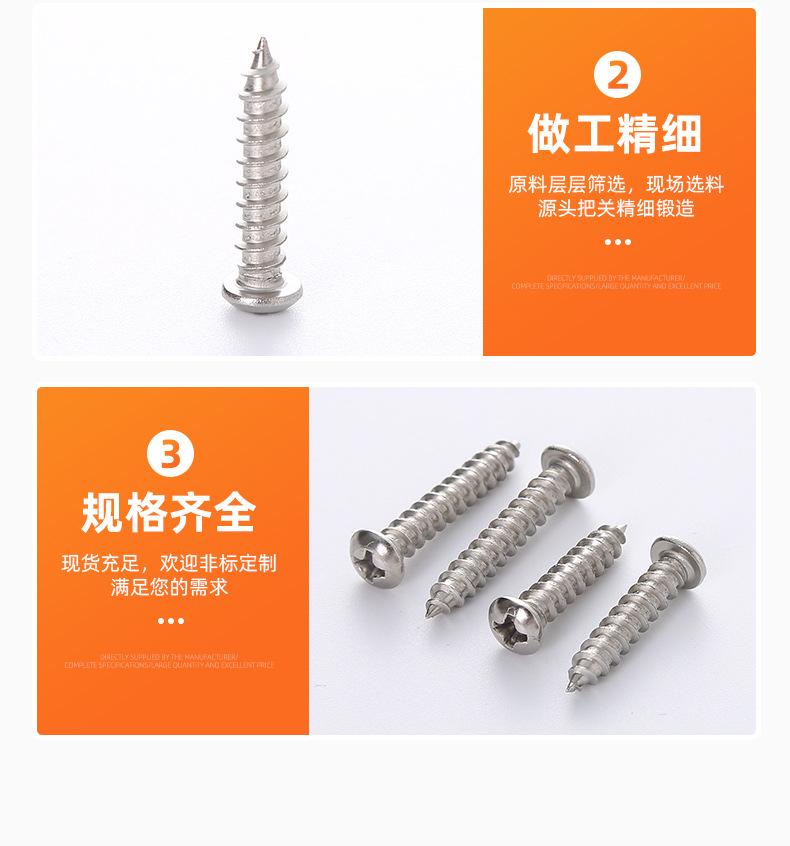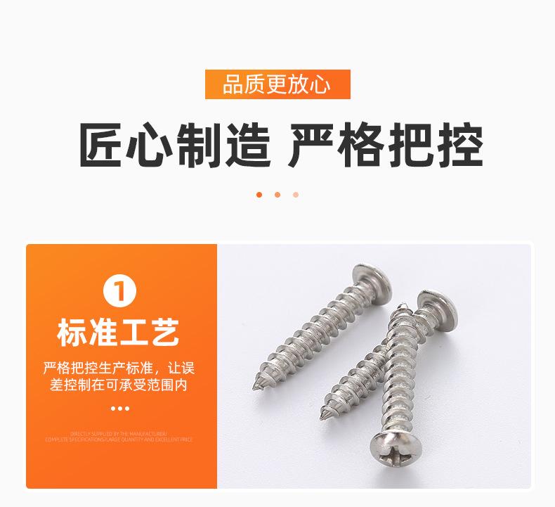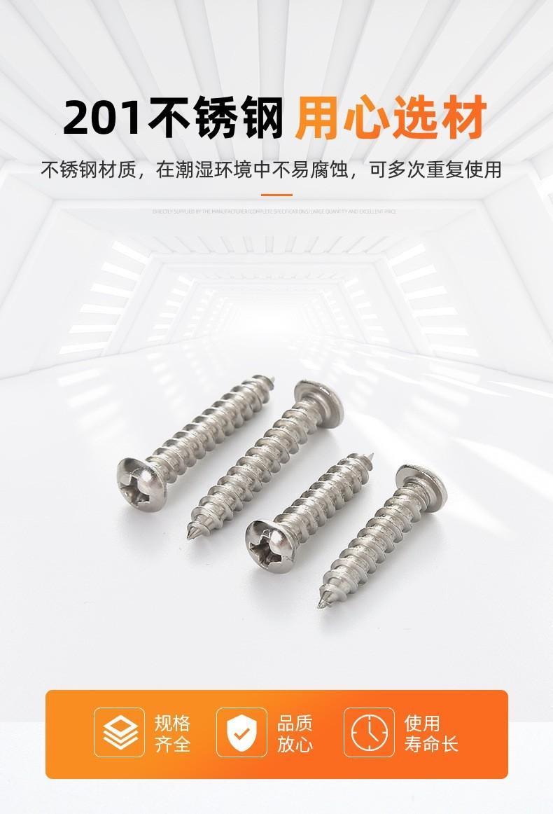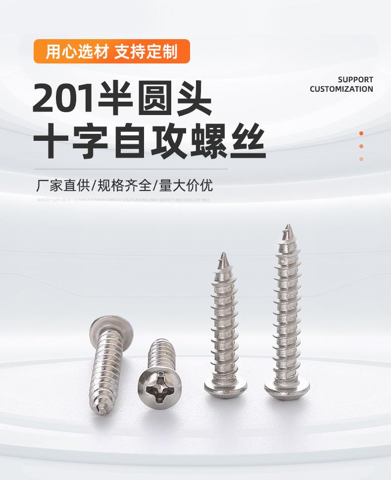 Tornillo autorroscante de cabeza semirredonda cruzada de acero inoxidable 201 Cabeza plana Ranura cruzada Fuente Apoya firmemente Suministro directo de fábrica M2