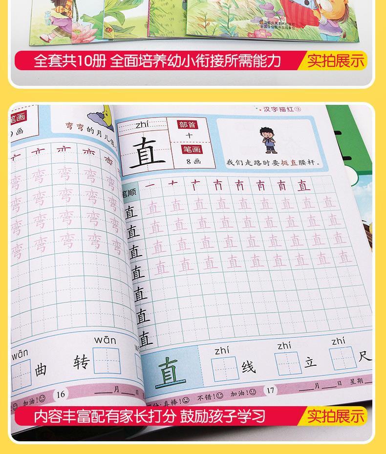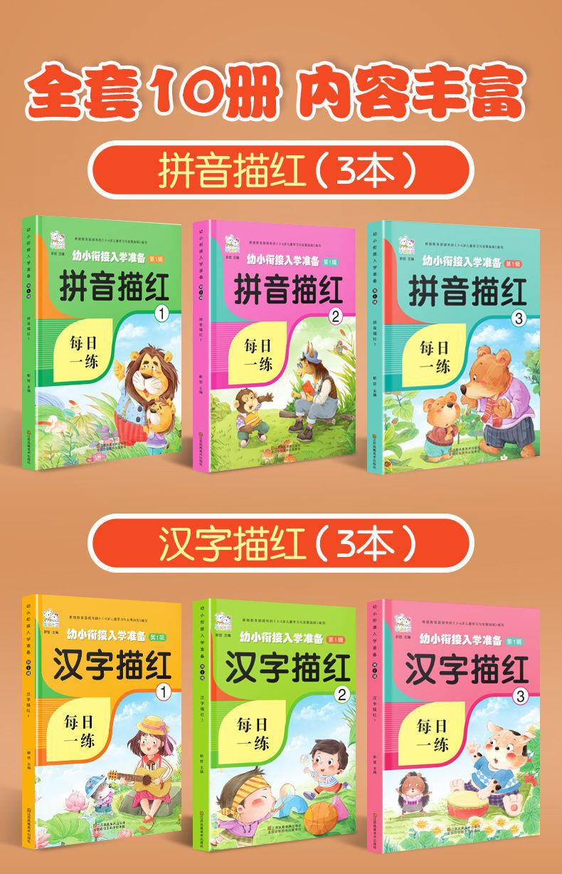 10 Volúmenes de Ejercicios de Iluminación para Jardín de Niños para Jardín de Niños, un Juego Completo para 1-6 Años Libros Digitales de Trazado de Pinyin y Práctica de Caligrafía