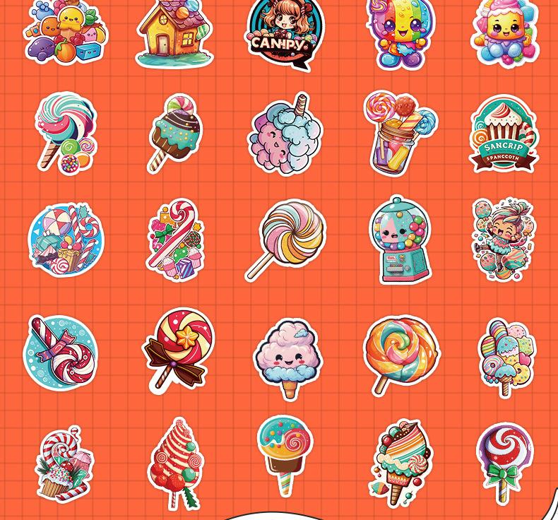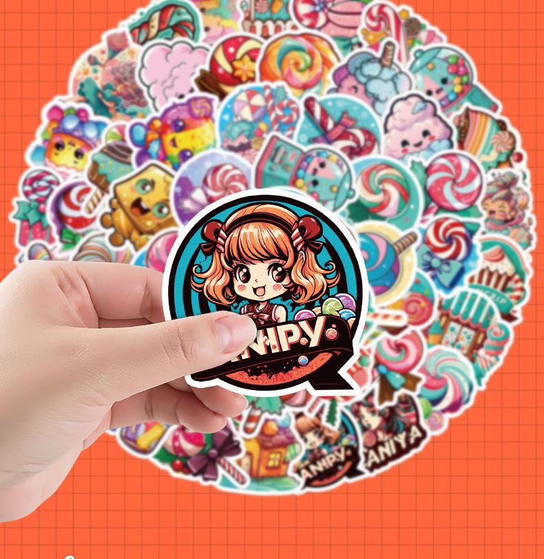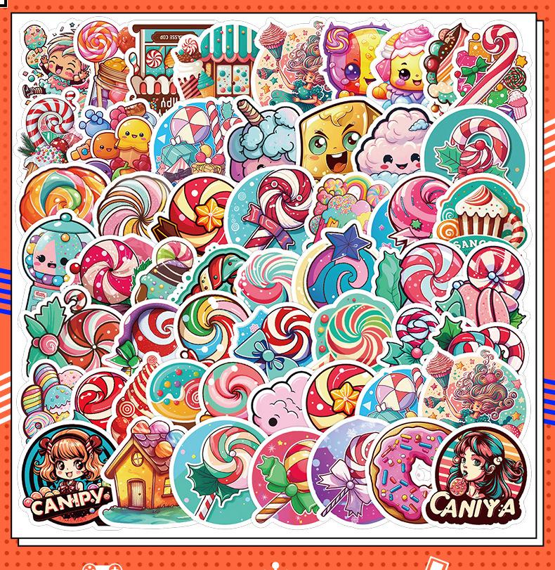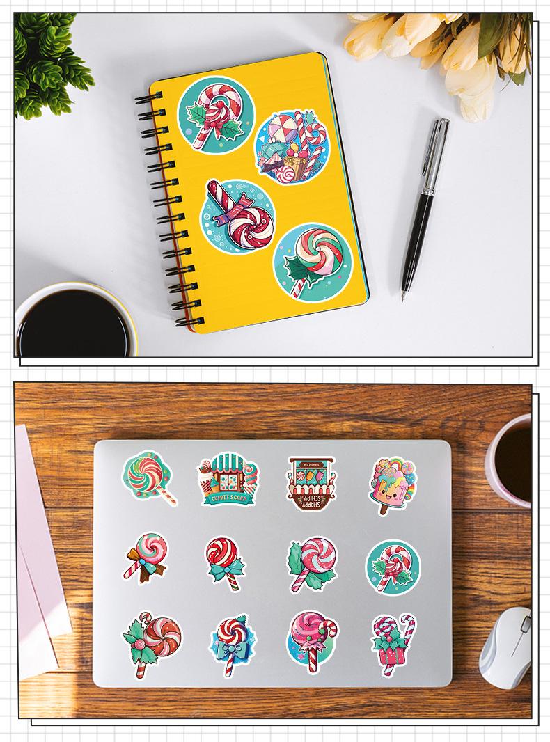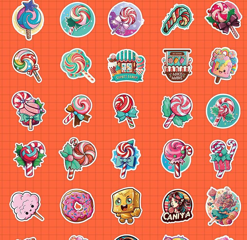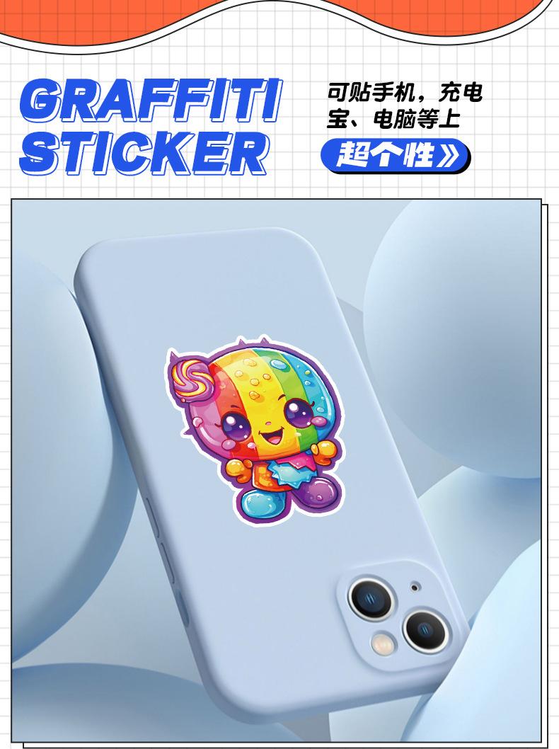 50 pegatinas de grafiti de piruleta para taza de agua, refrigerador, caja de papelería, pegatinas decorativas, pegatinas creativas impermeables para cuadernos y manuales.
