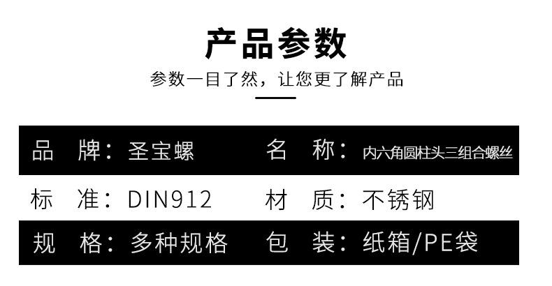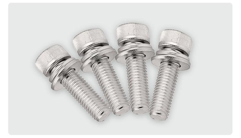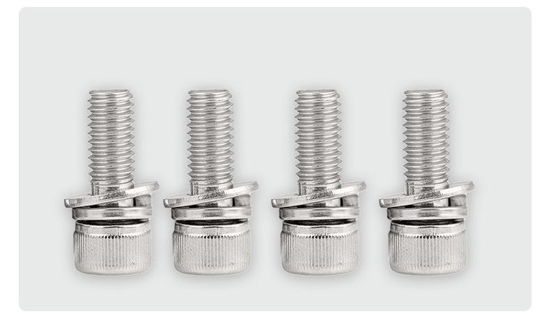 Acero inoxidable 304 moleteado hexágono zócalo arandela plana arandela elástica tornillo de combinación cabeza cilíndrica tornillo de combinación cabeza de copa