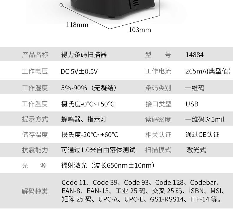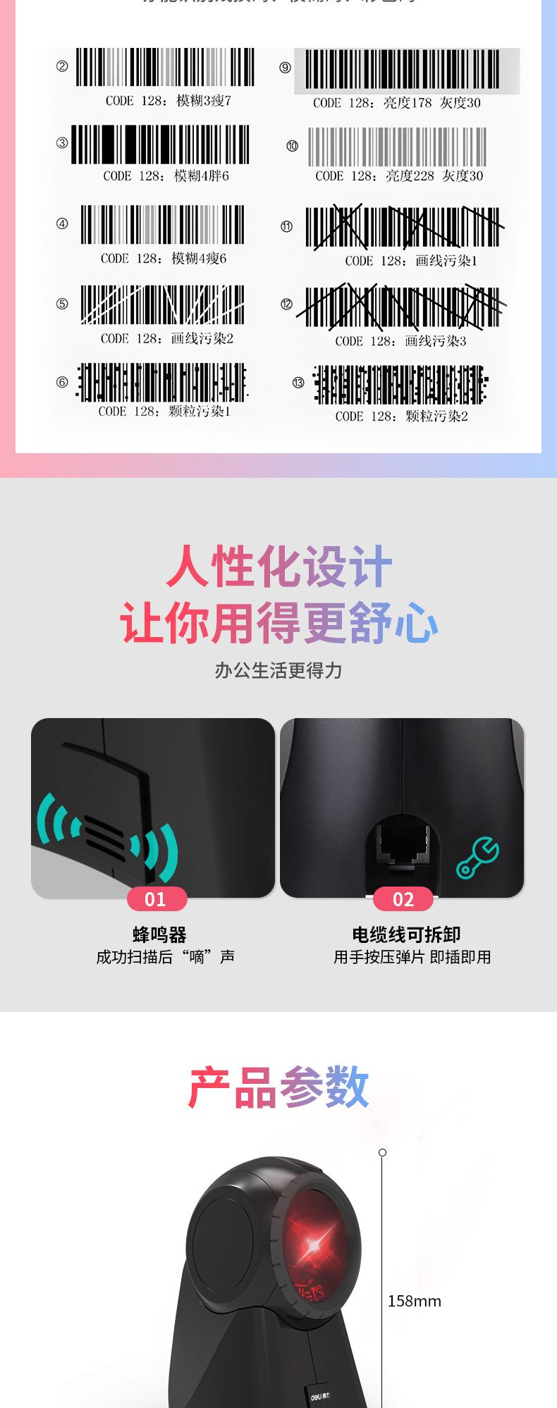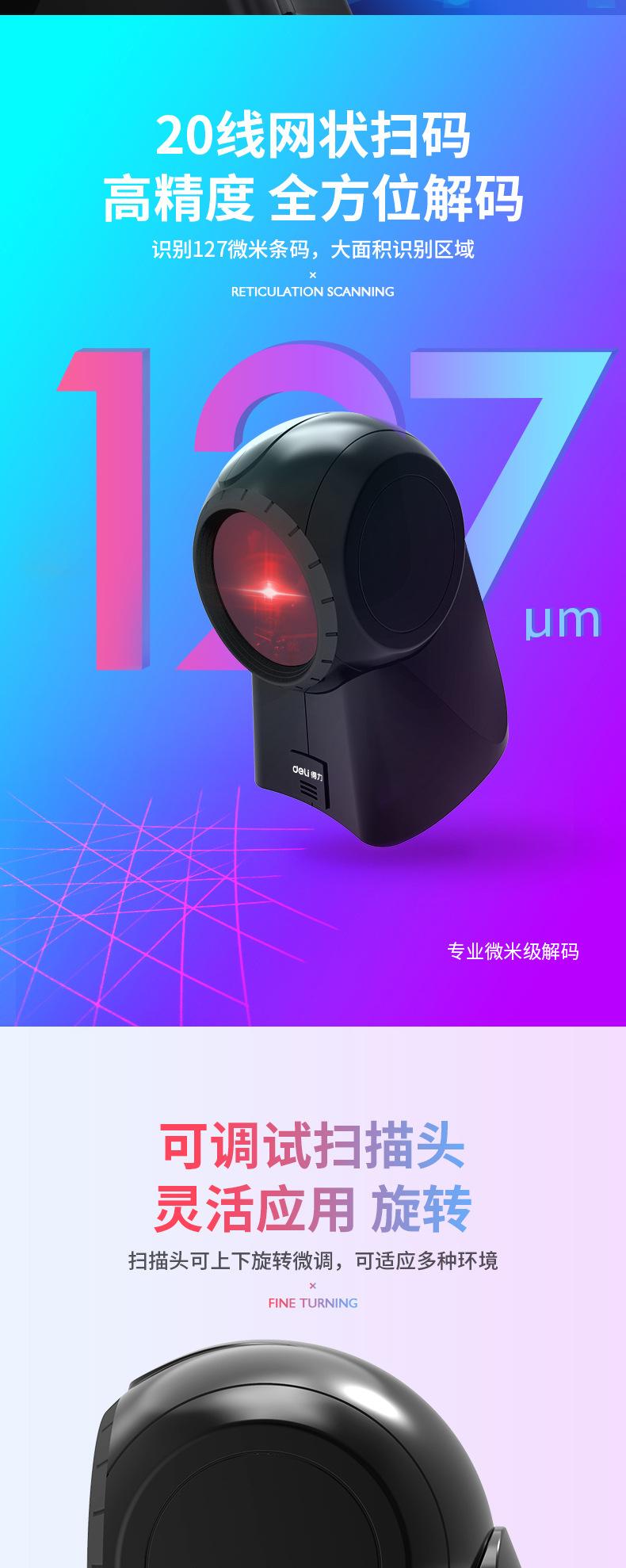 Escáner de plataforma de código bidimensional unidimensional Deli 14884, plataforma de escaneo de caja registradora de supermercado esférica, pistola de escaneo