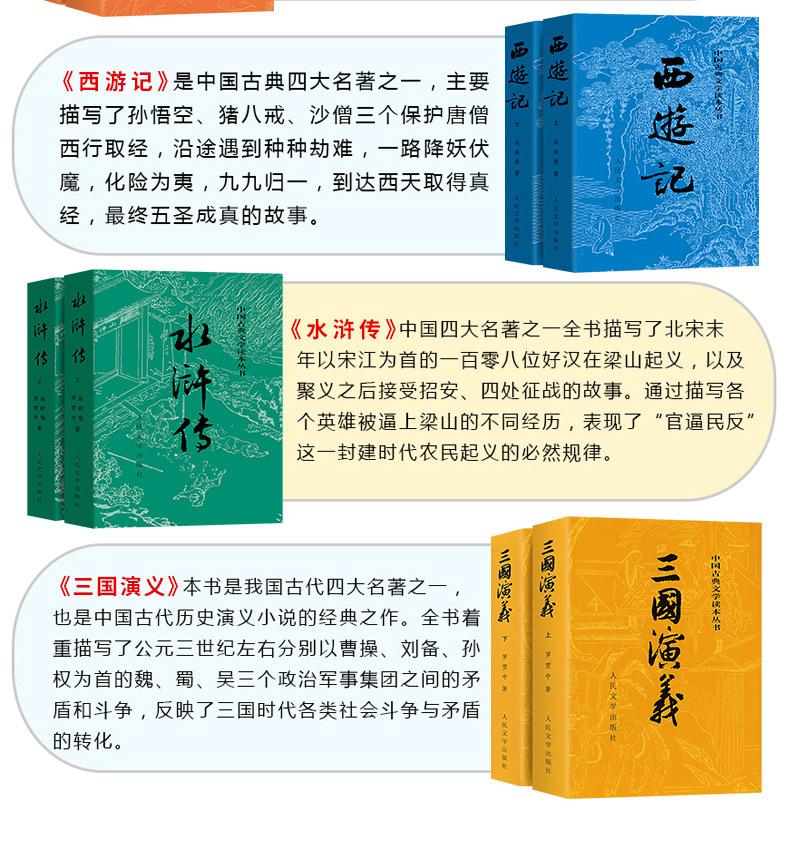 Dream of Red Mansions (2 copies), Romance of the Three Kingdoms (2 copies), Water Margin (2 copies), Journey t...