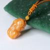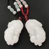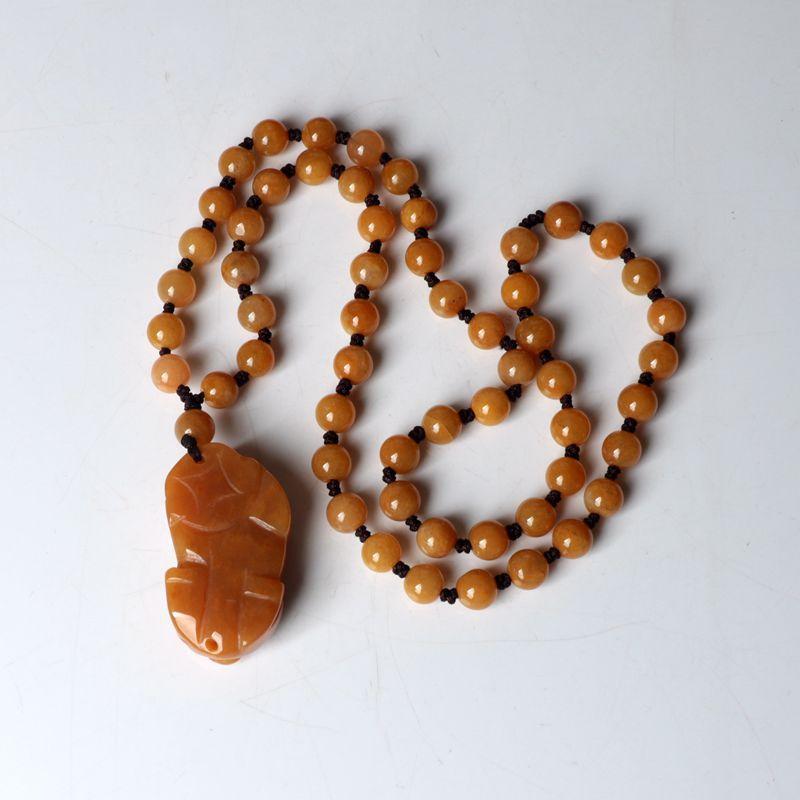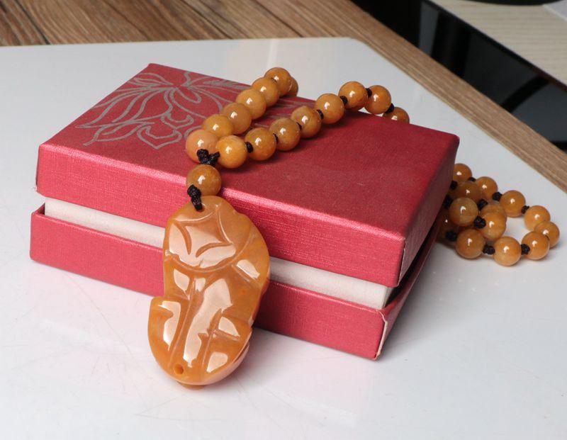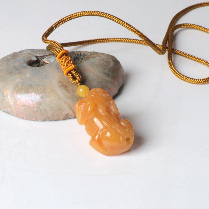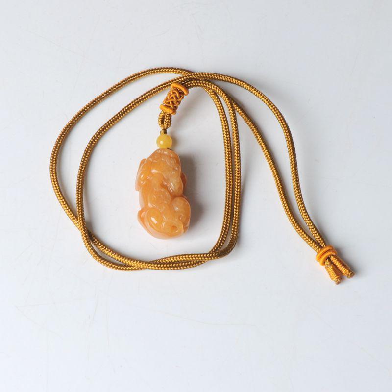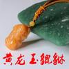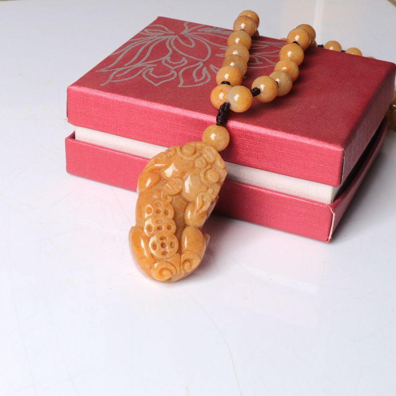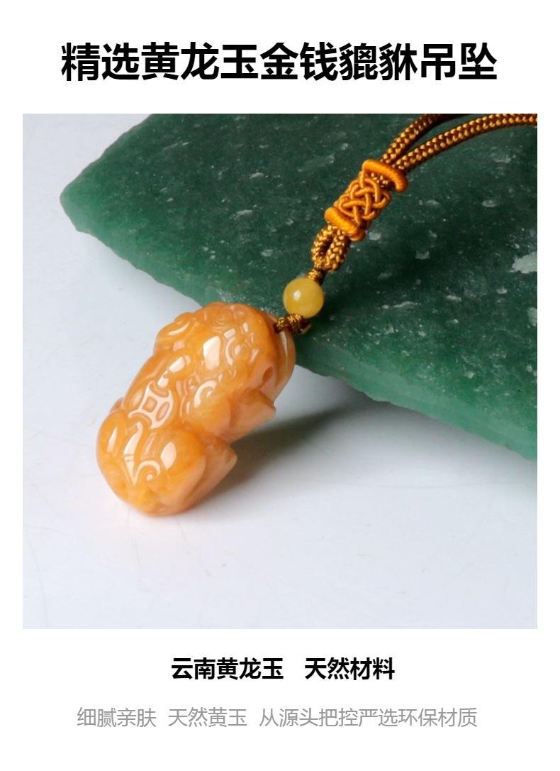 La bolsa tejida doble pixiu de jade y dragón amarillo está colgada en la pieza. El nudo café mide 10 cm de largo, la cuenta superior es una cuenta de 10 mm de seis palabras del sutra del corazón del mantra. El negro, el blanco, el amarillo, el rojo y el verde representan los cinco colores, dando vida a los ladrillos y las tejas. Monedas de cobre de dragón y fénix, y campanas.