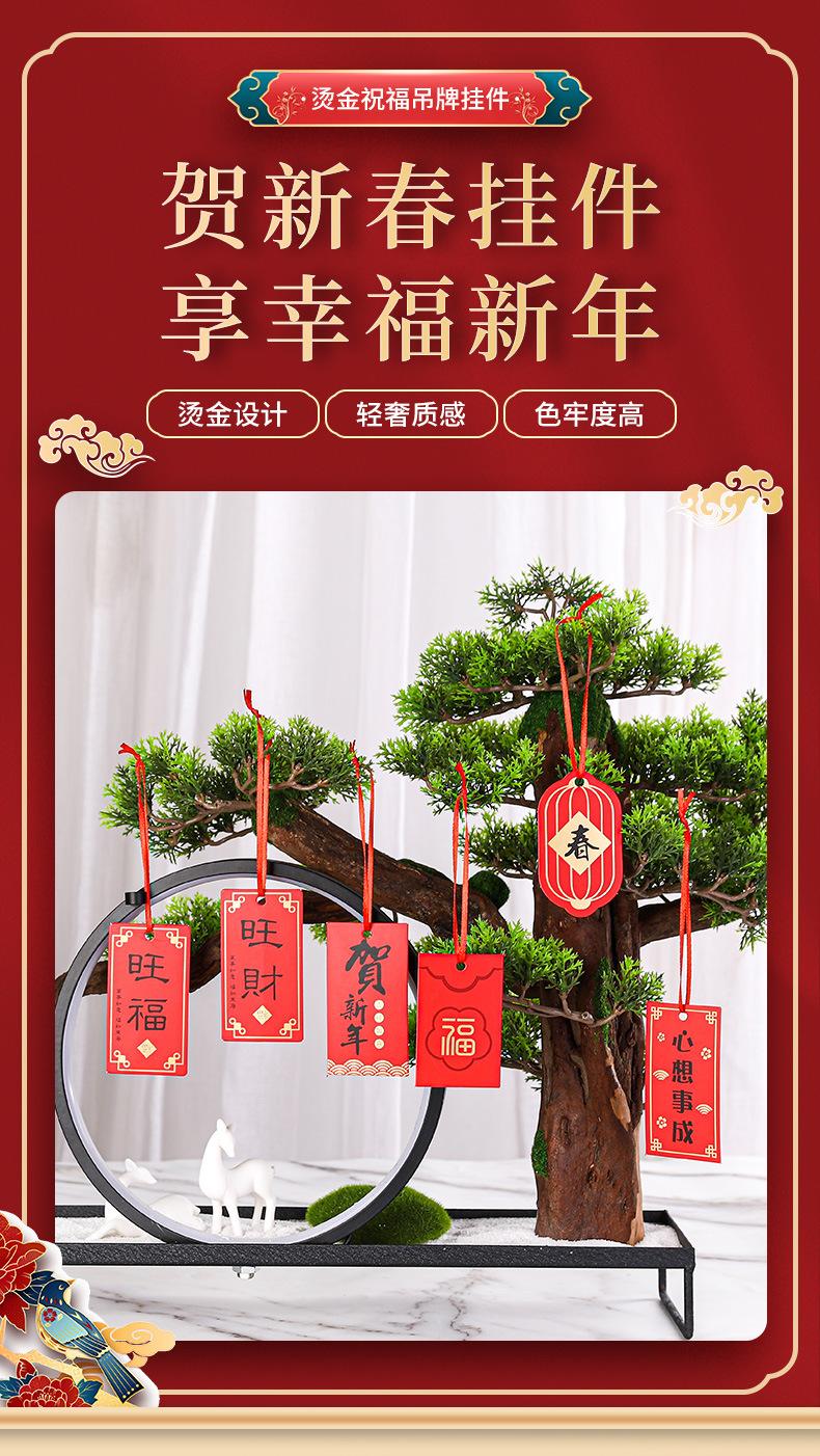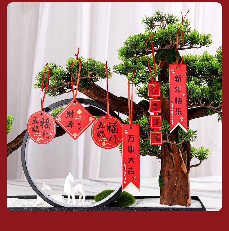 Tarjeta de felicitación de Año Nuevo con diseño de bronce creativo, etiqueta para bendición navideña, mensaje, ascensor, caja de regalo, Festival de Primavera, colgante decorativo DIY