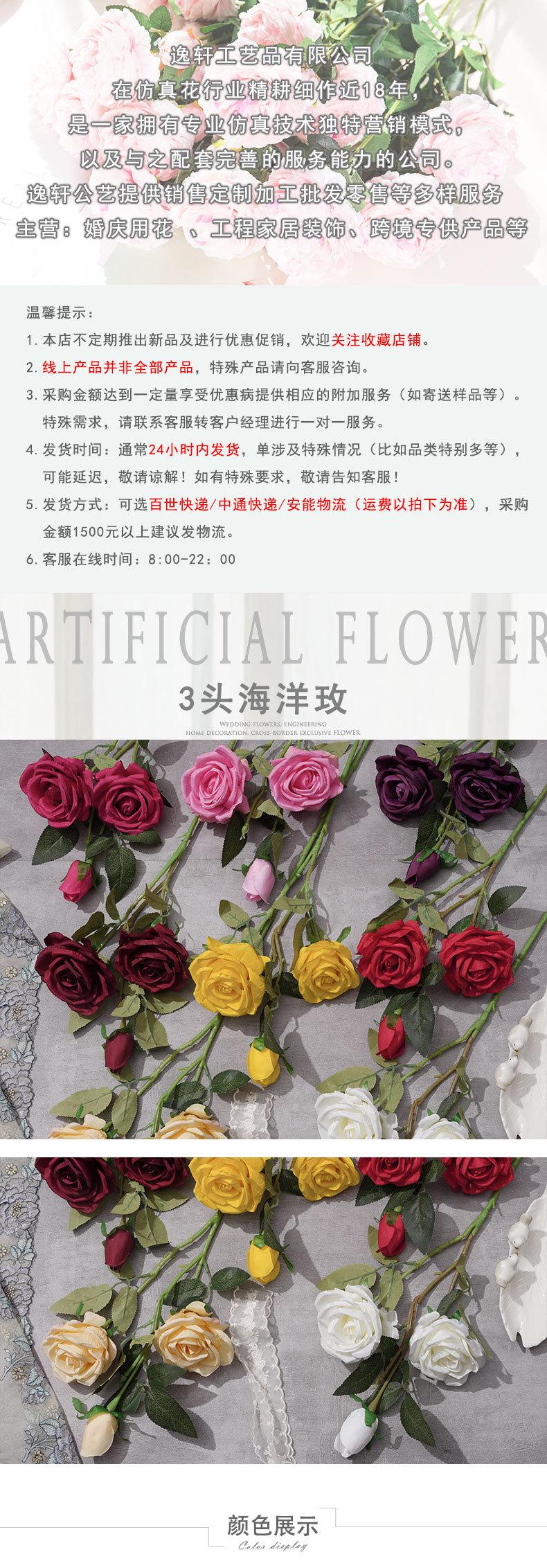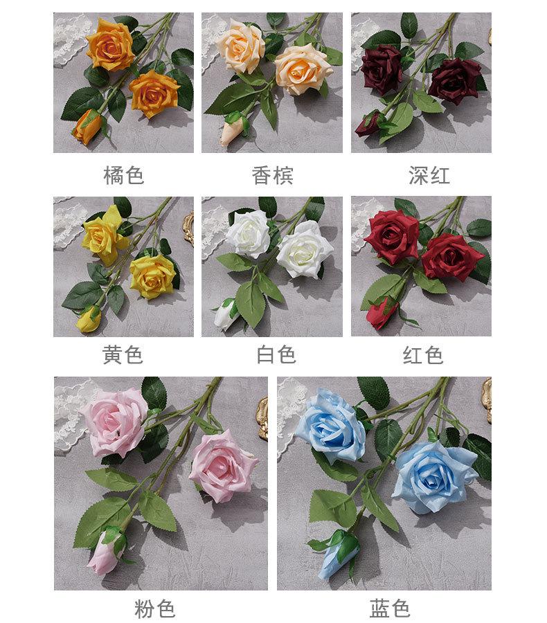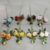Rosa de Esquina de 3 Cabezas Flor Artificial Arreglo Floral de Auditorio para Boda Flor Arreglo Floral de Alta Gama Set Decorativo