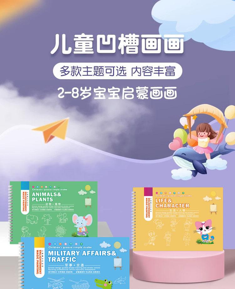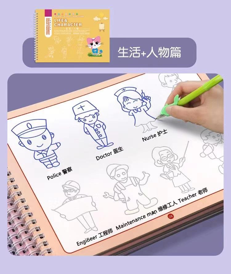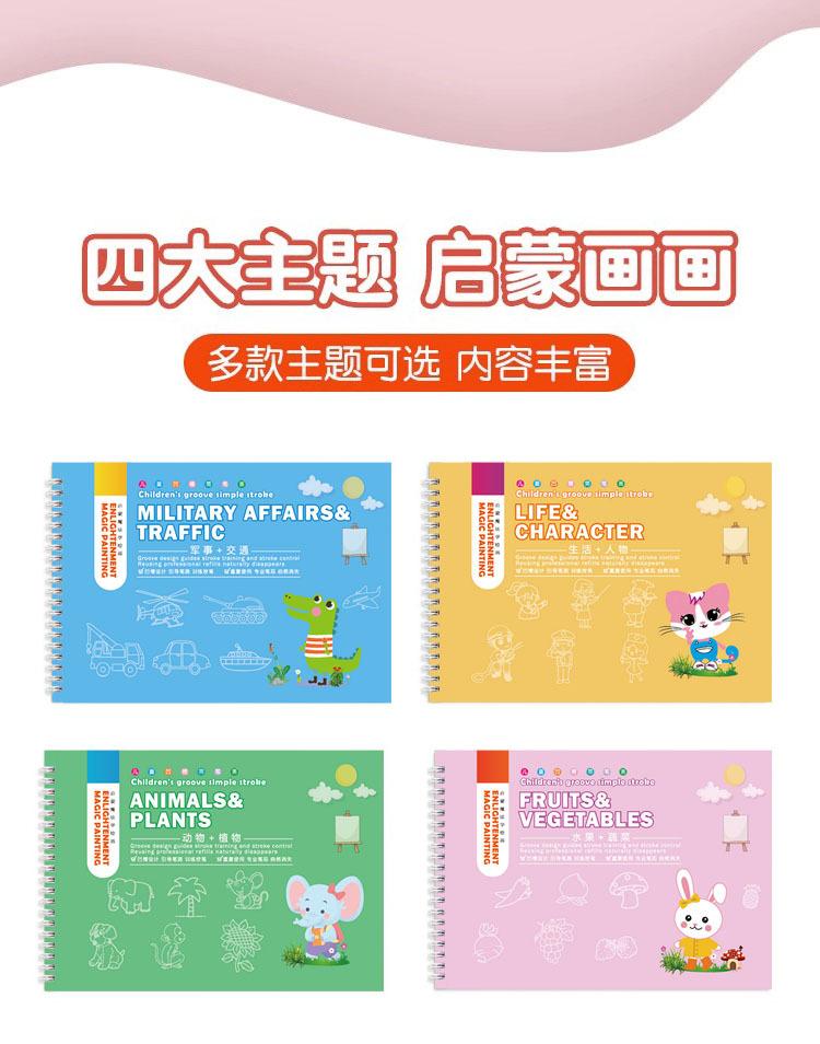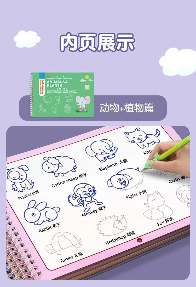 Libro de dibujo con surcos para niños, libro de dibujo de iniciación con trazos simples, libro de copias para entrenamiento de control de pluma, mágico, jardín de infancia, aprender a dibujar