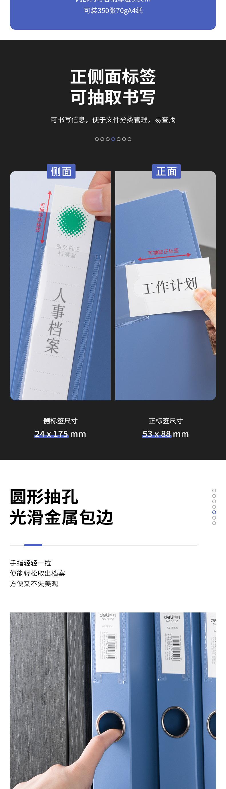 Deli 5622 Caja de Archivo Libro de Información de Documentos Ancho del Lomo 35 mm Gran Capacidad A4 Caja para Almacenamiento de Documentos de Oficina Venta al por Mayor