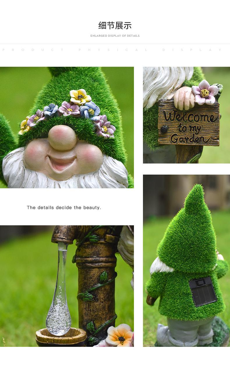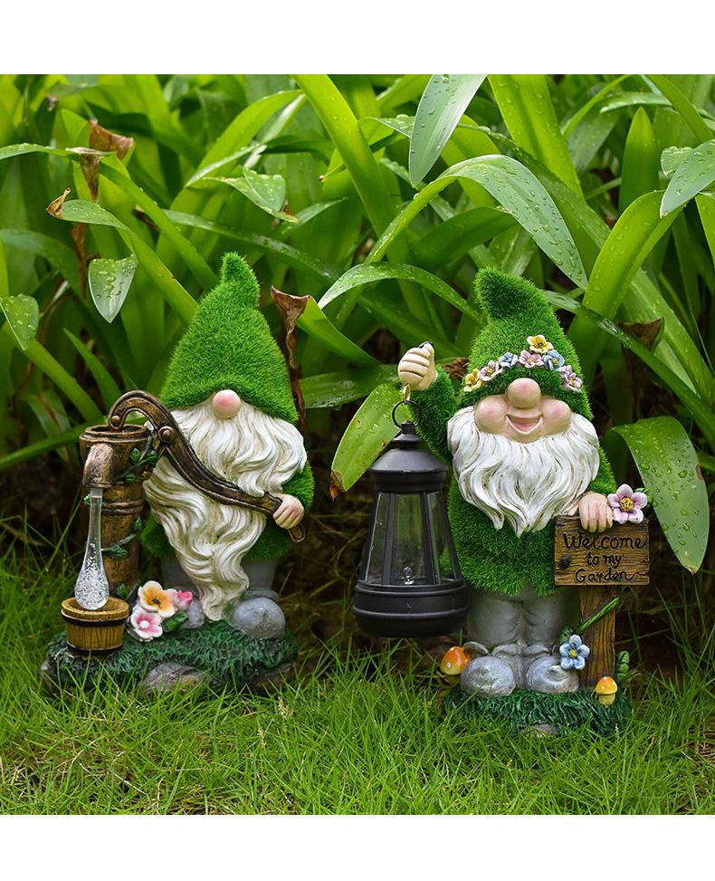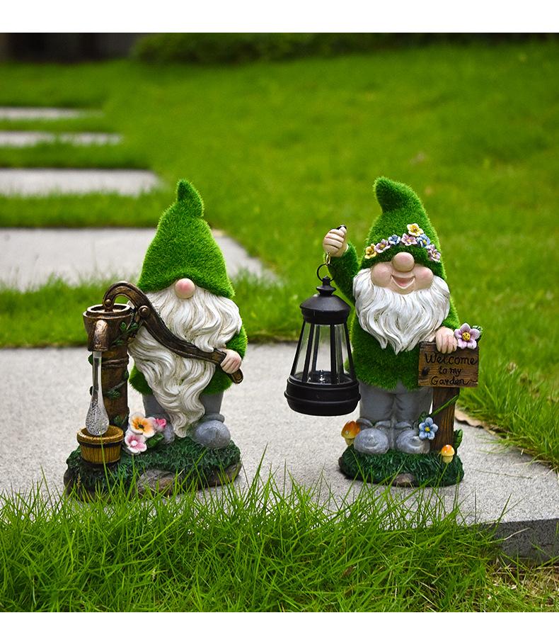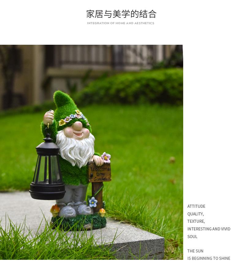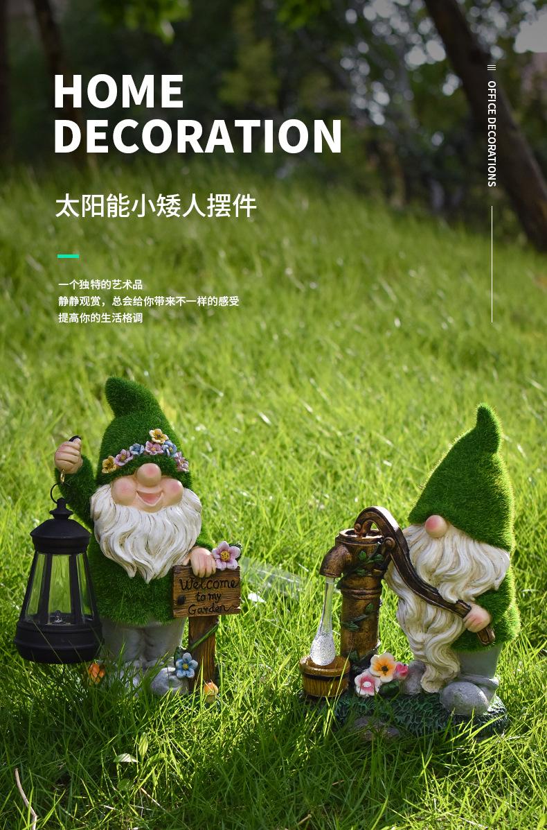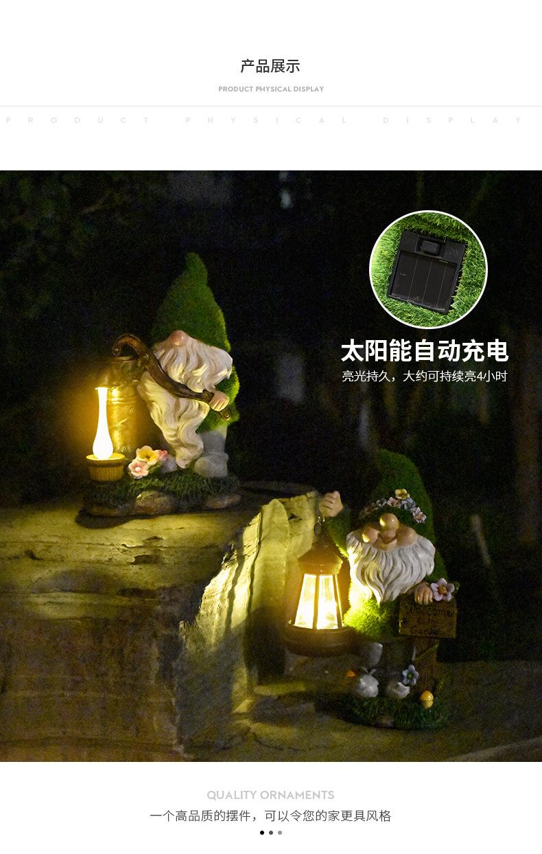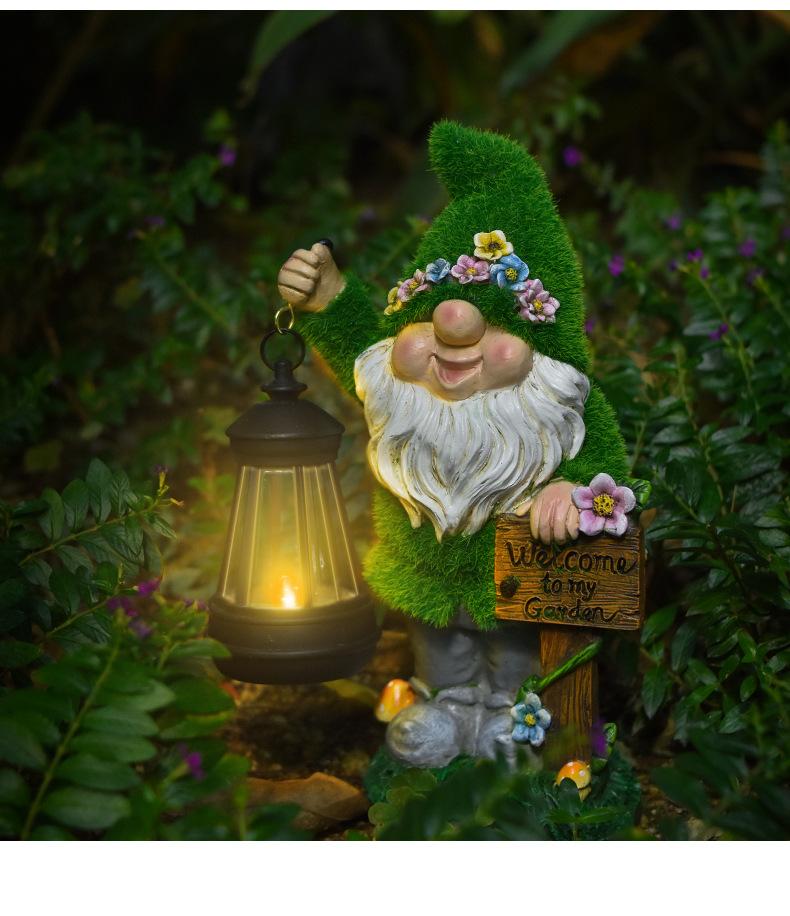 Adornos Enanos Flocados Transfronterizos Resina Patio Balcón Linterna Gnomo Solar Jardín Escultura Decorativa