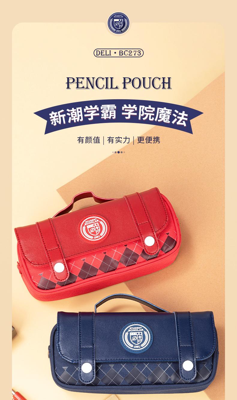 Estuche para lápices Deli BC273 Classic College Flip Multiusos, fácil de transportar, estuche para lápices de gran capacidad de almacenamiento