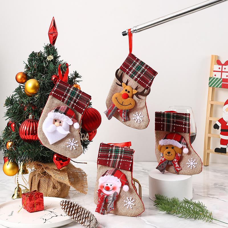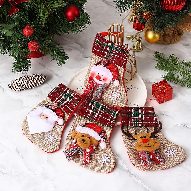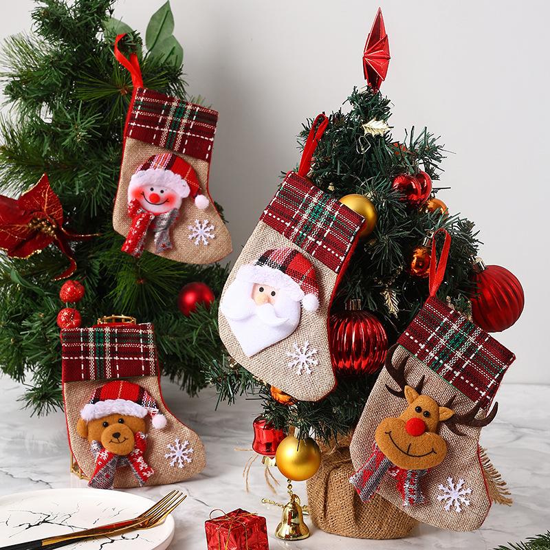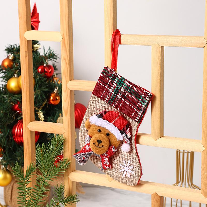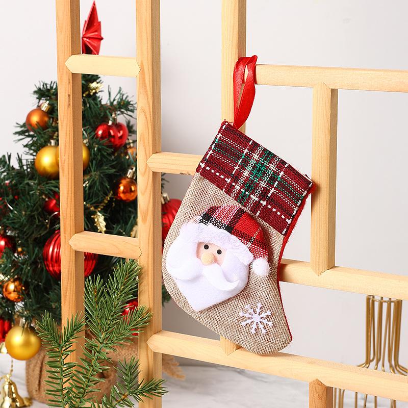 Nuevas decoraciones navideñas Calcetines pequeños de Papá Noel Colgante de árbol de Navidad Calcetines de Navidad Bolsa de regalo Bolsa de Navidad