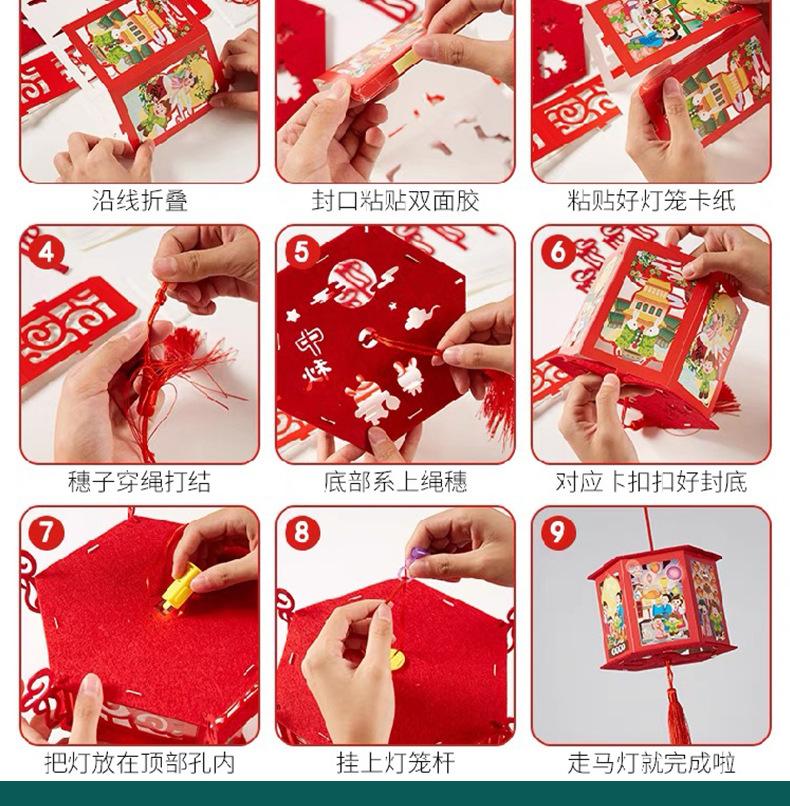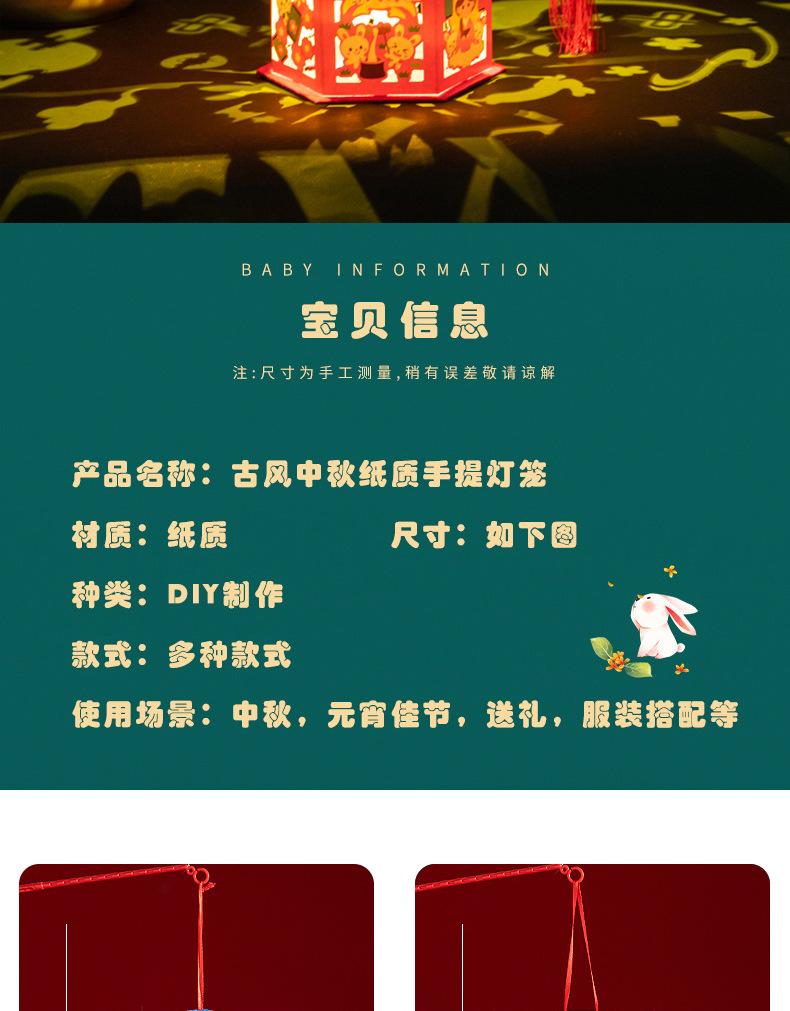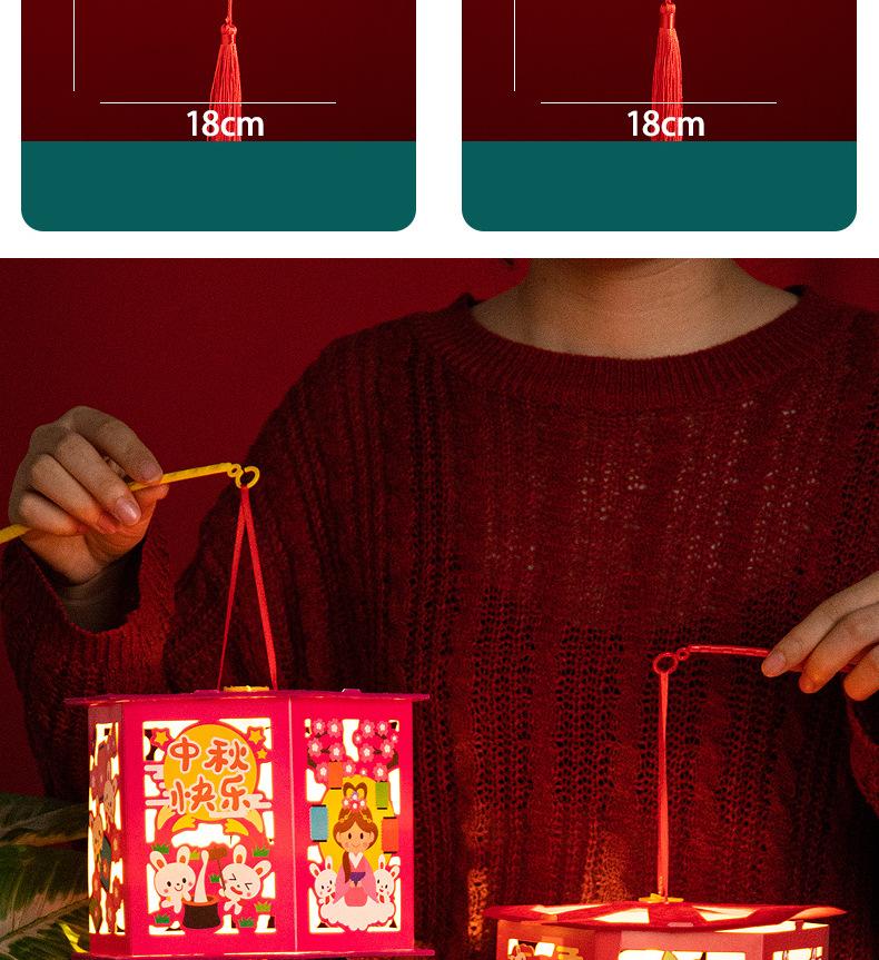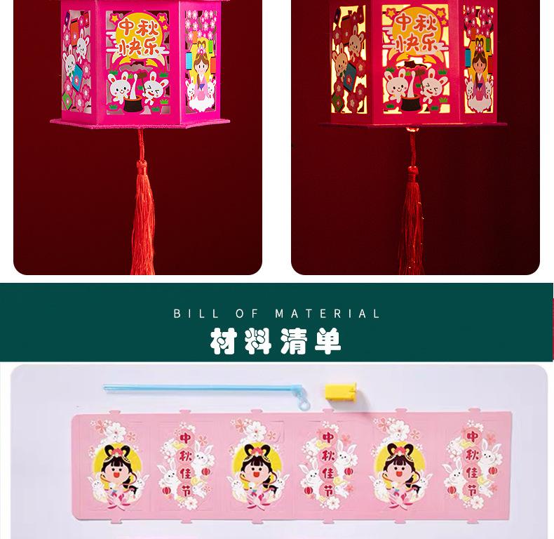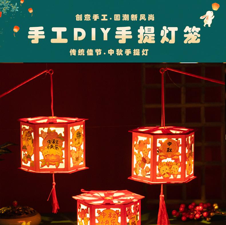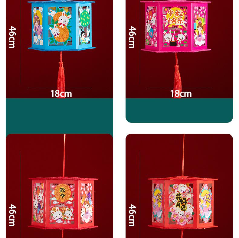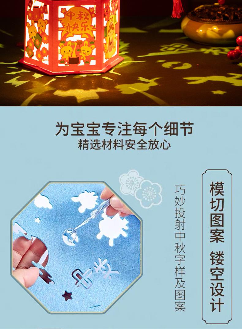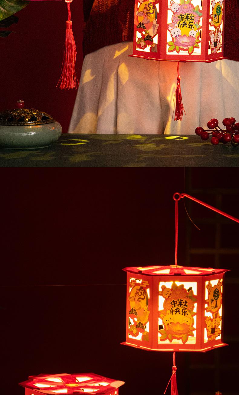 Linternas del Festival del Medio Otoño, Linternas de Proyección de Tendencia Nacional, Materiales de Producción DIY Hechos a Mano para Niños, Linternas de Conejo de Estilo Antiguo, Bolso Luminoso