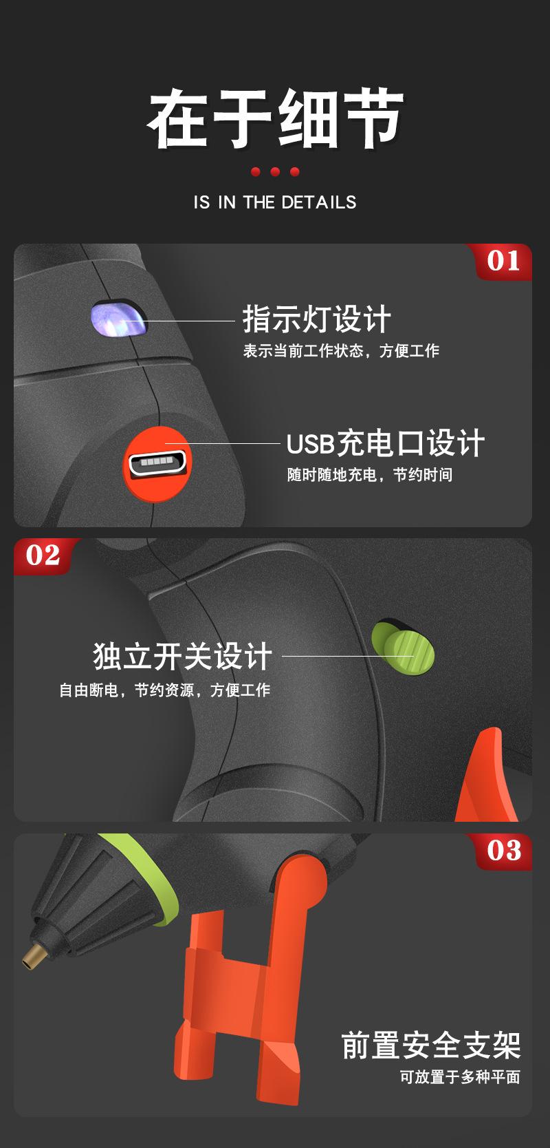 Pistola de pegamento termofusible con batería de litio, manual doméstico, inalámbrica, universal, recargable, barra pequeña de pegamento de 7 mm