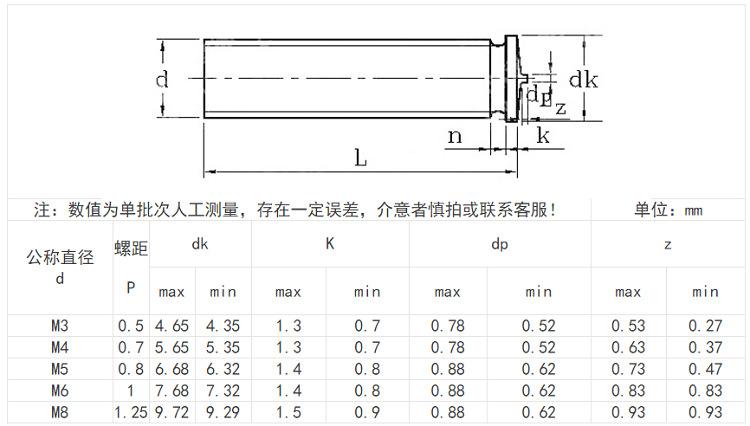 | tamaño | Por ejemplo: 3*6 (diámetro de la rosca 3 mm, longitud de la rosca 6 mm) excluyendo la longitud de la cabeza | ||