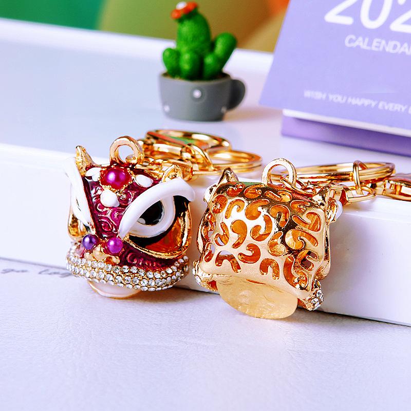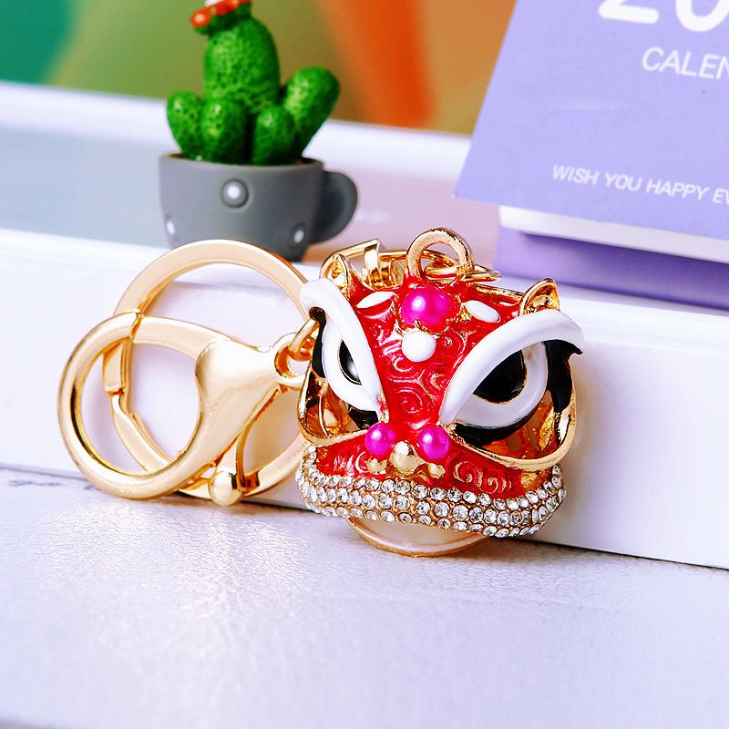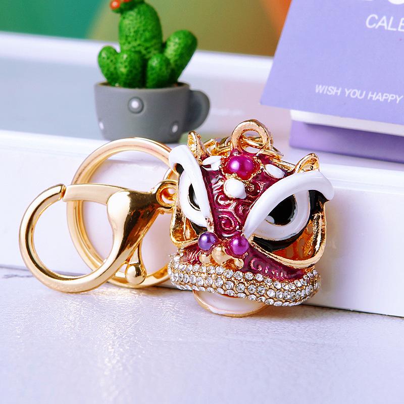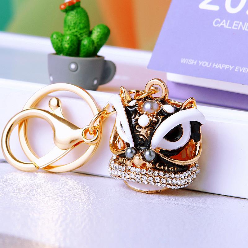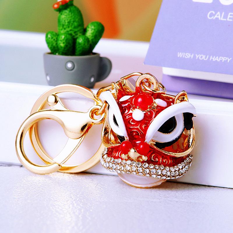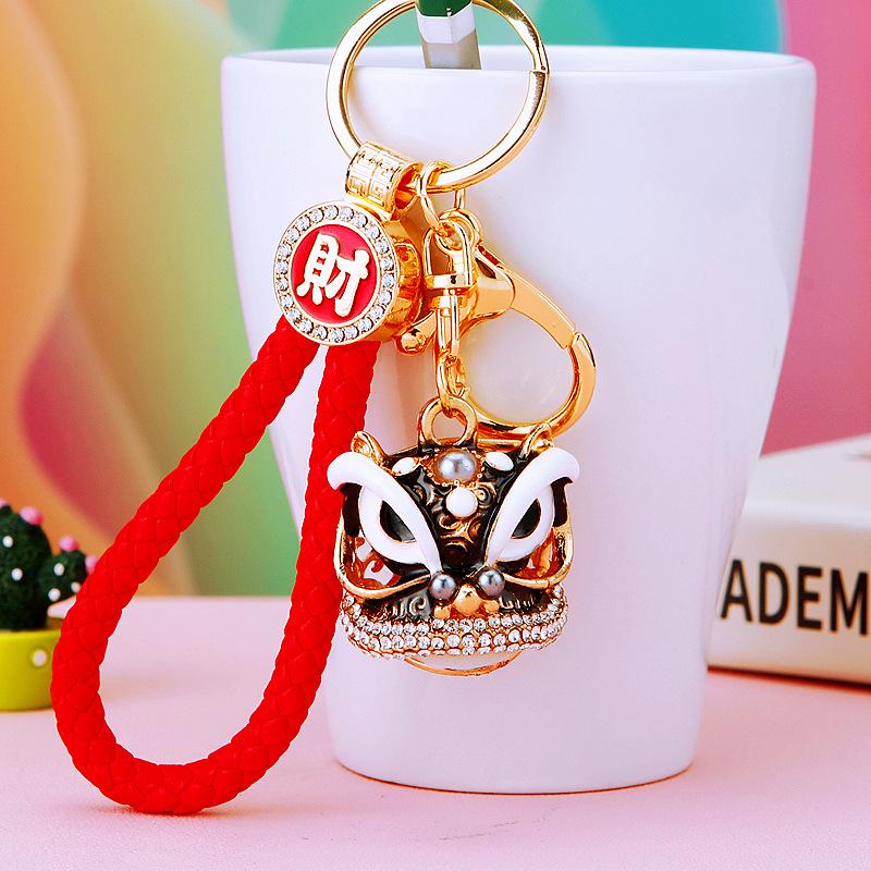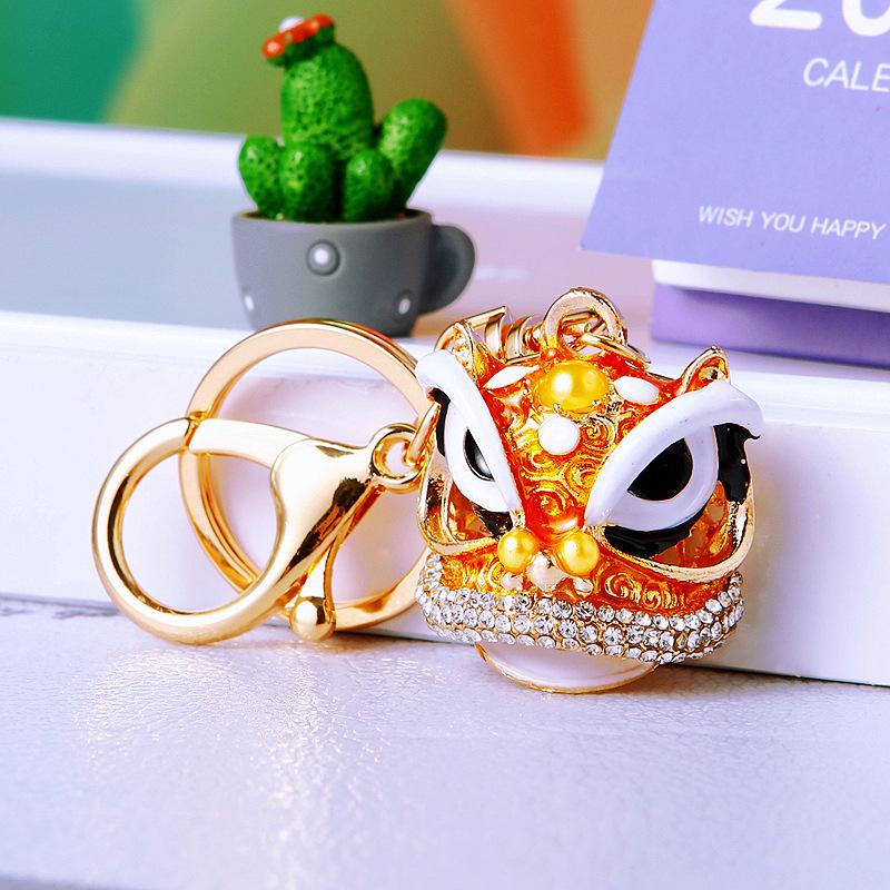 Xingshi llavero de coche metal lindo hombres y mujeres colgante de bolso llavero anillo pequeño cabeza de león danzante diamante colgante regalo