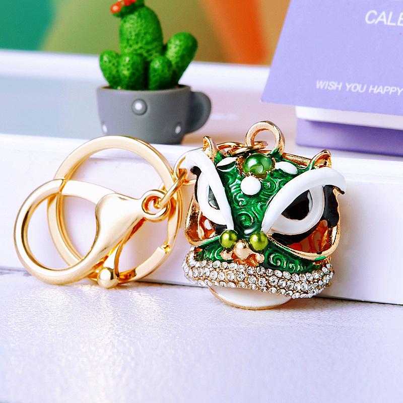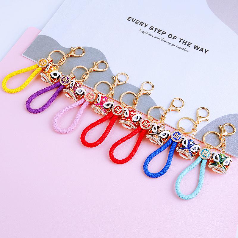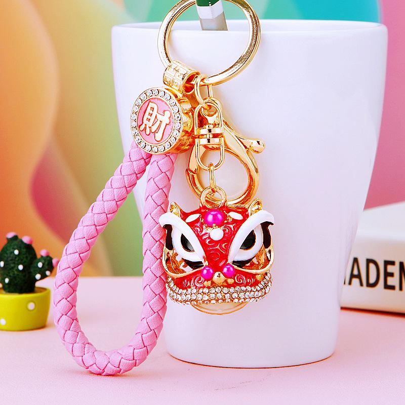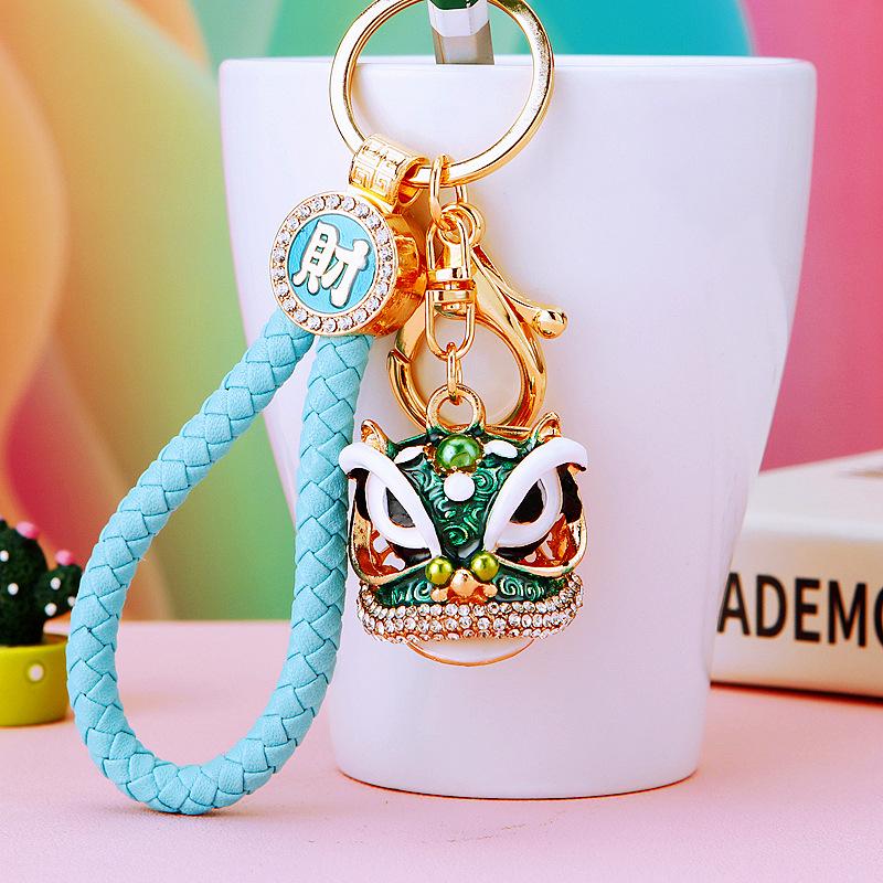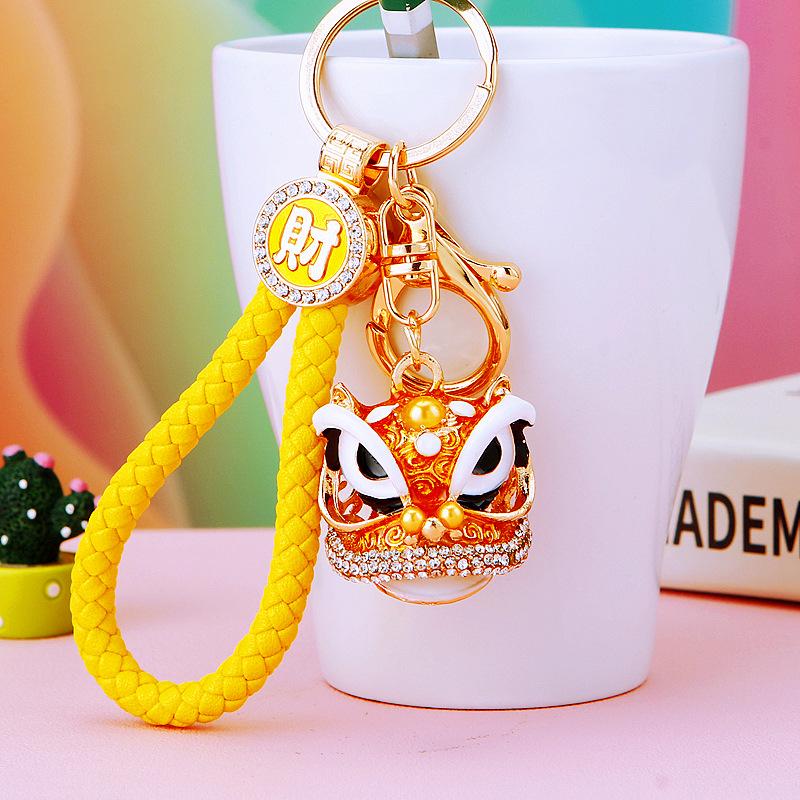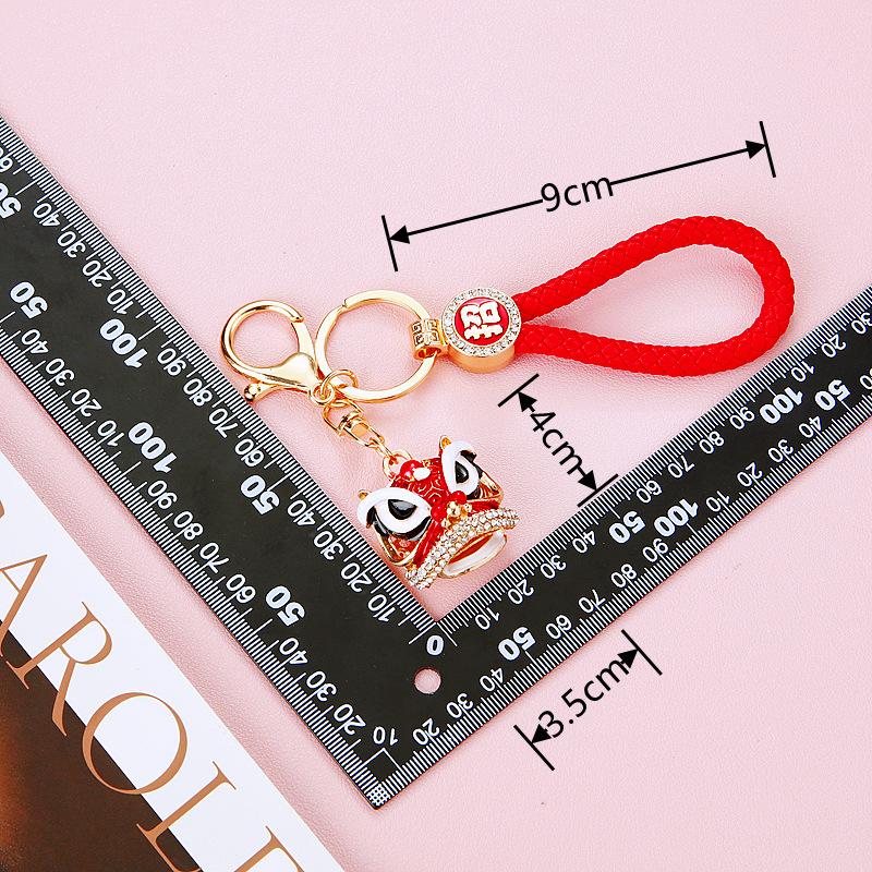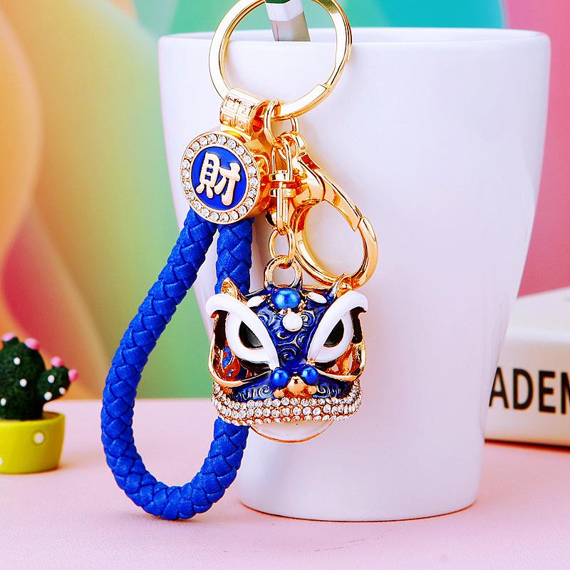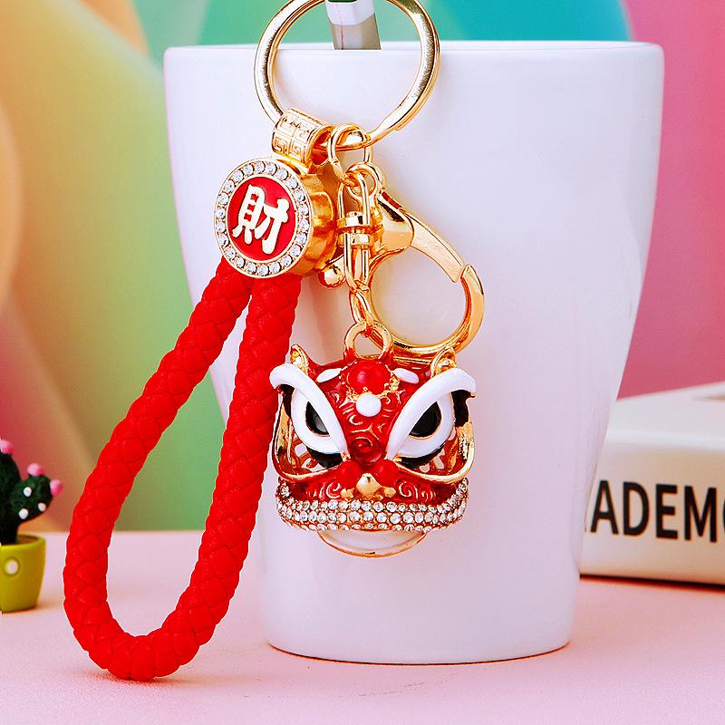 Xingshi llavero de coche metal lindo hombres y mujeres colgante de bolso llavero anillo pequeño cabeza de león danzante diamante colgante regalo