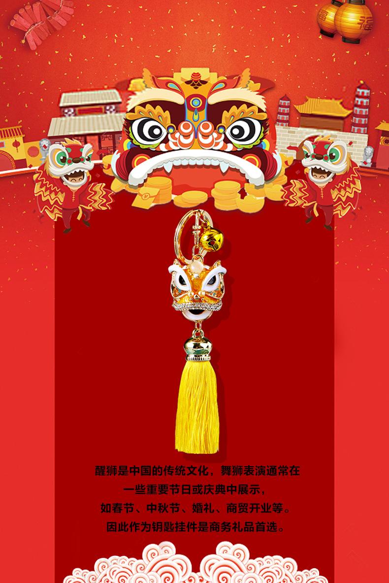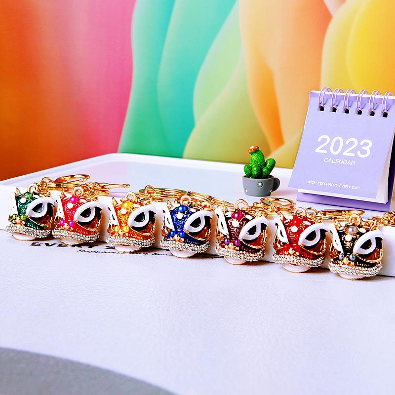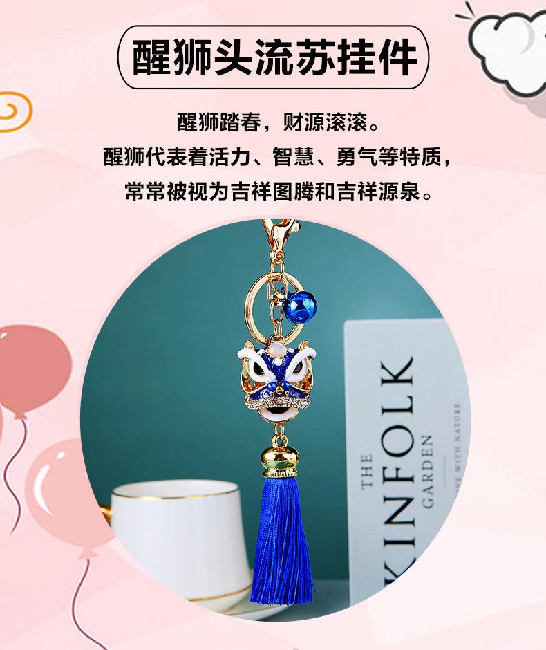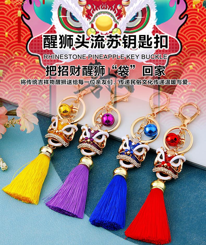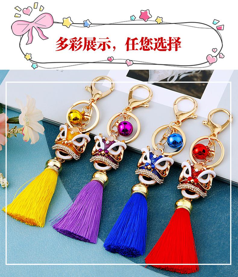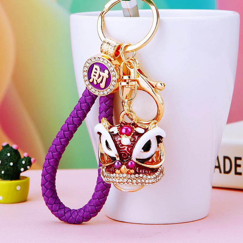 Xingshi llavero de coche metal lindo hombres y mujeres colgante de bolso llavero anillo pequeño cabeza de león danzante diamante colgante regalo