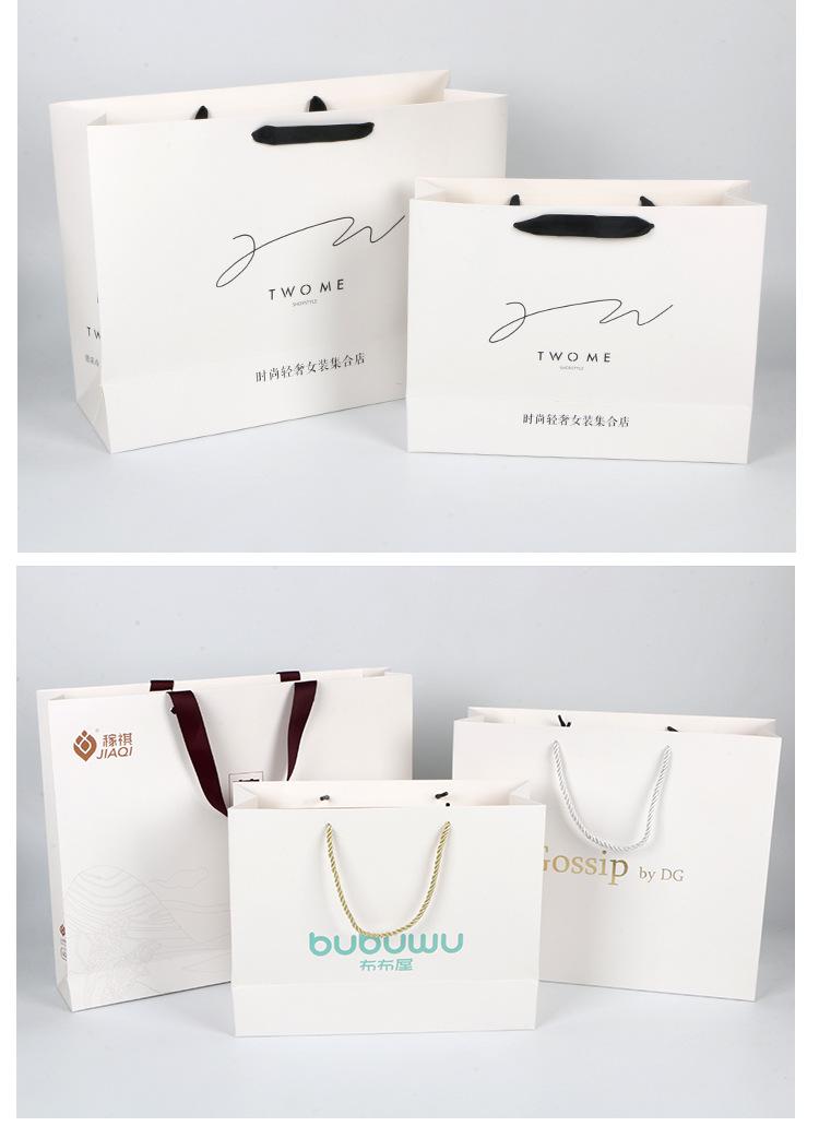Bolsa de papel en stock, bolso de mano, tarjeta blanca engrosada, bolsa de regalo, bolsa de compras, ropa, bolsa de papel portátil, bolsa de embalaje