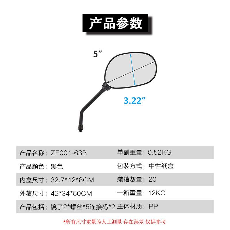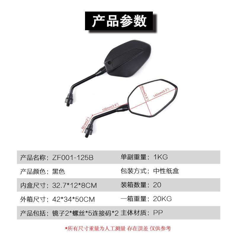 Zf001-125b (rearview mirror + mirror base + screws), Zf001-63b (rearview mirror + mirror base + screws), Zf001...