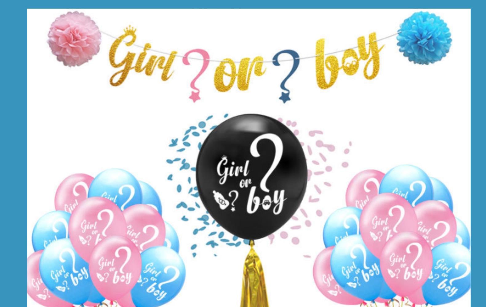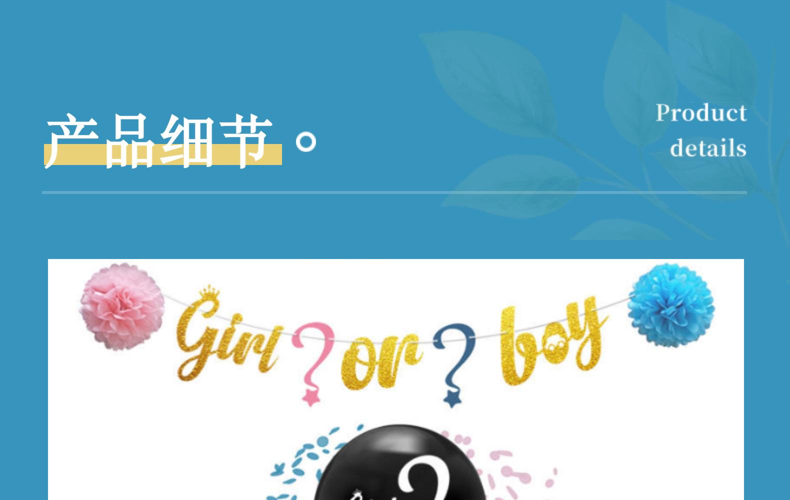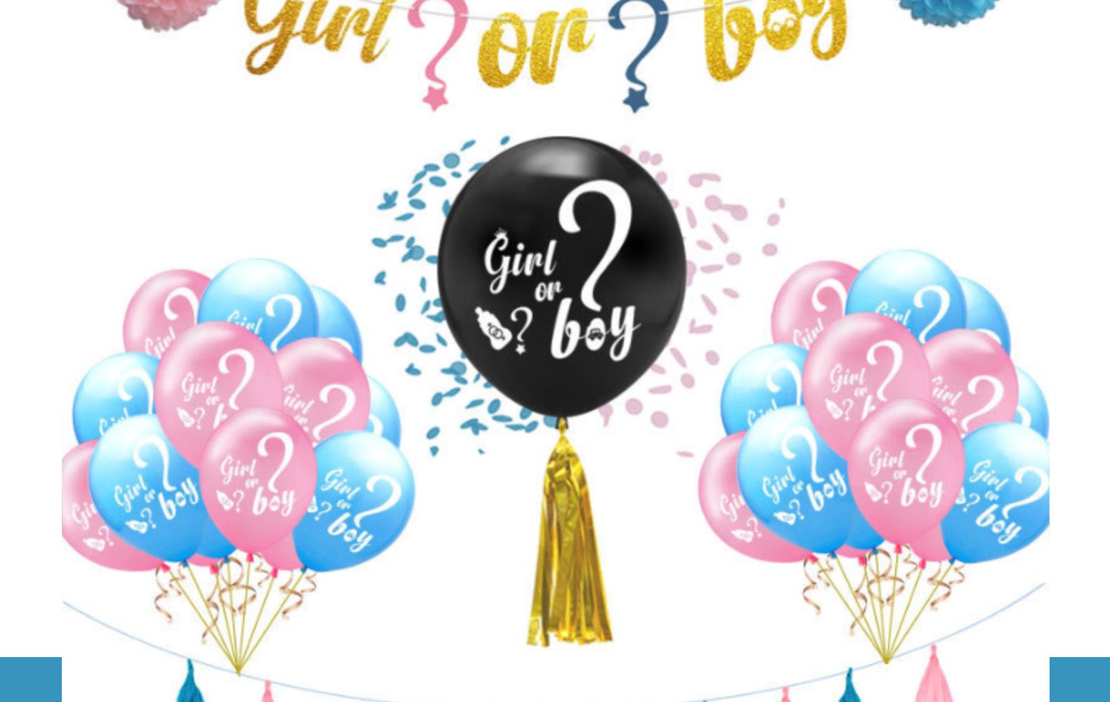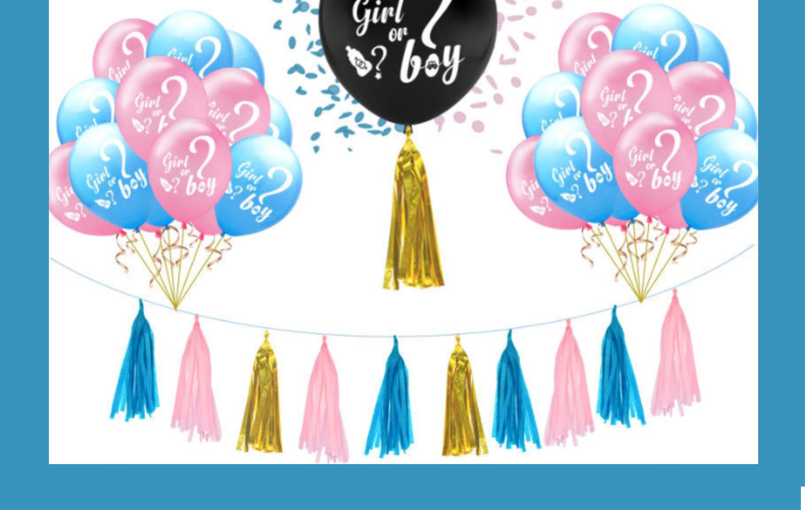 girlorboy:1 36-inch G balloon +10 pink G balloon +10 blue G ball +3 packs of 15 tassels +2 paper flowers + pull flag +2 sequins