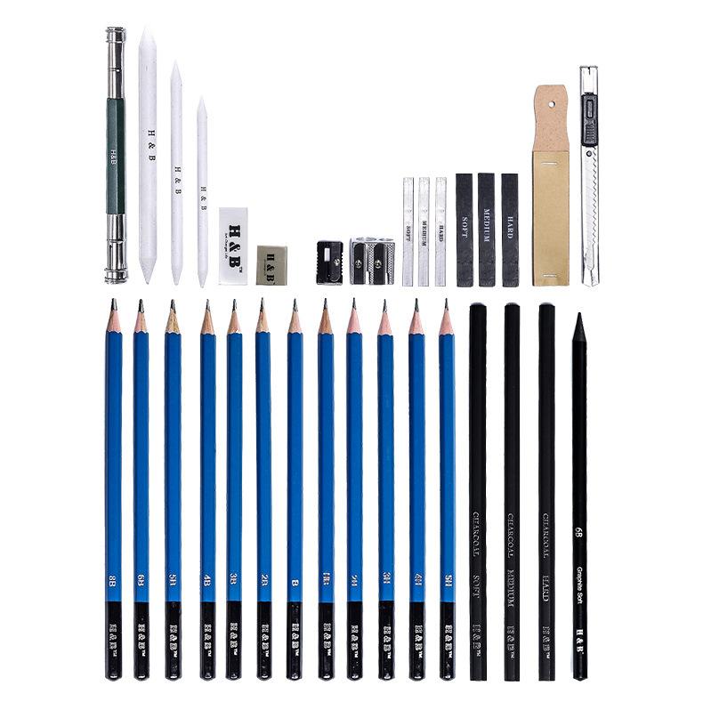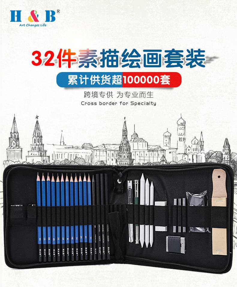 H&B Juego de Bocetos de 32 Piezas Juego de Pintura para Principiantes Herramientas de Lápiz de Boceto 2B Juego Completo para Estudiantes de Arte Venta al por Mayor Transfronteriza