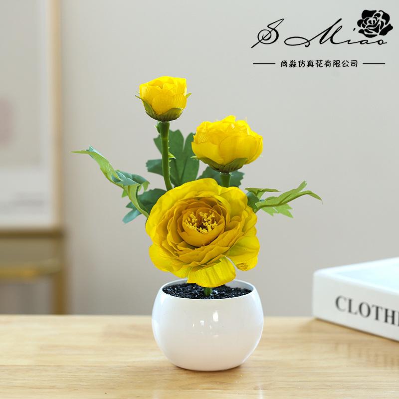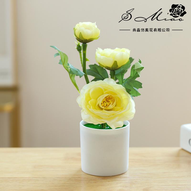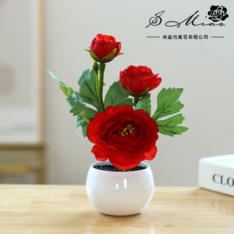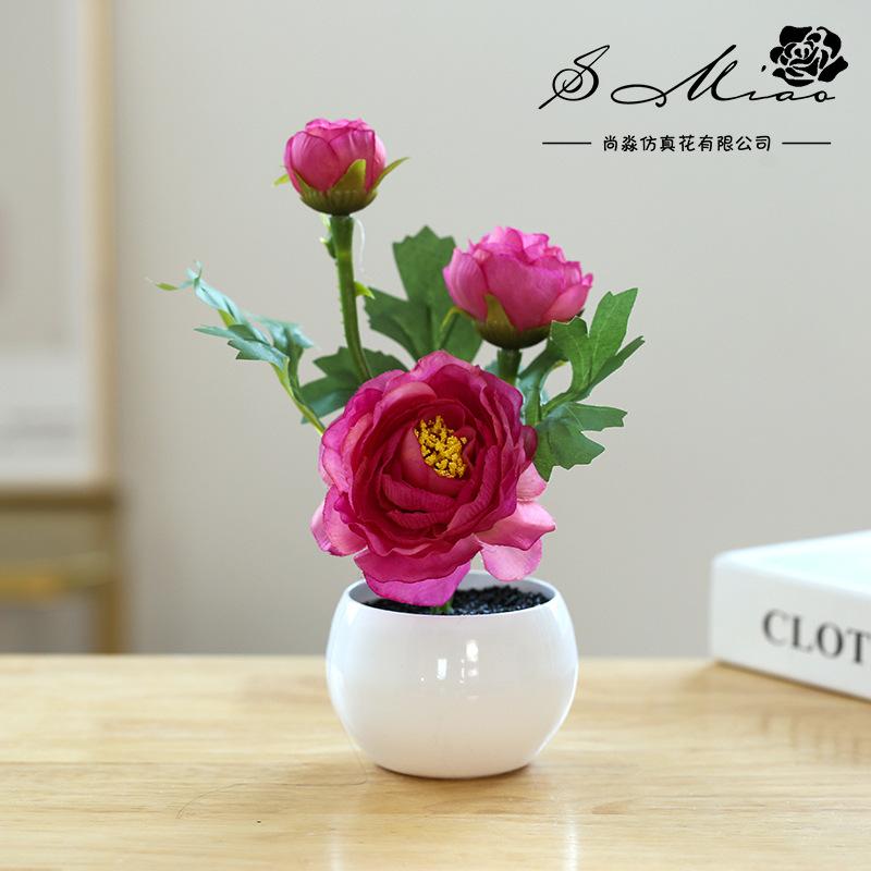 ??Nombre del producto: Bonsái de rosa de té de tres cabezas (maceta cilíndrica)
