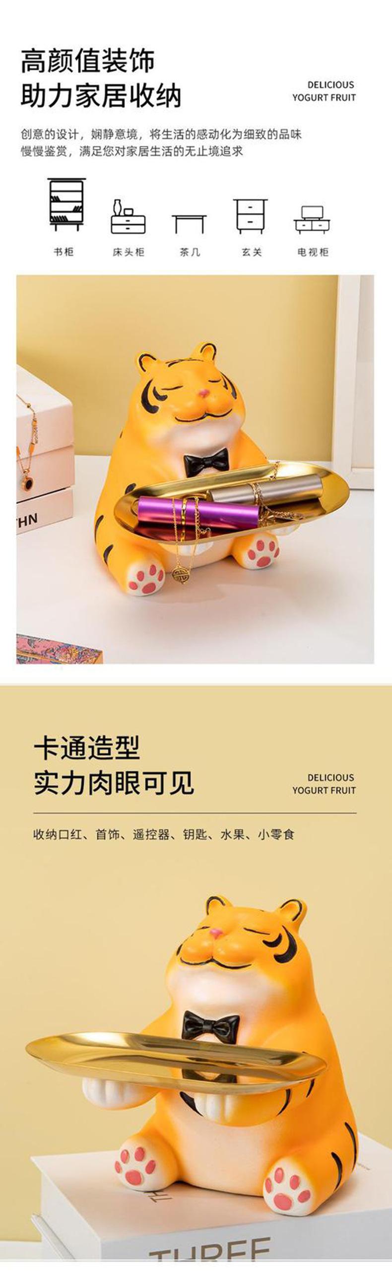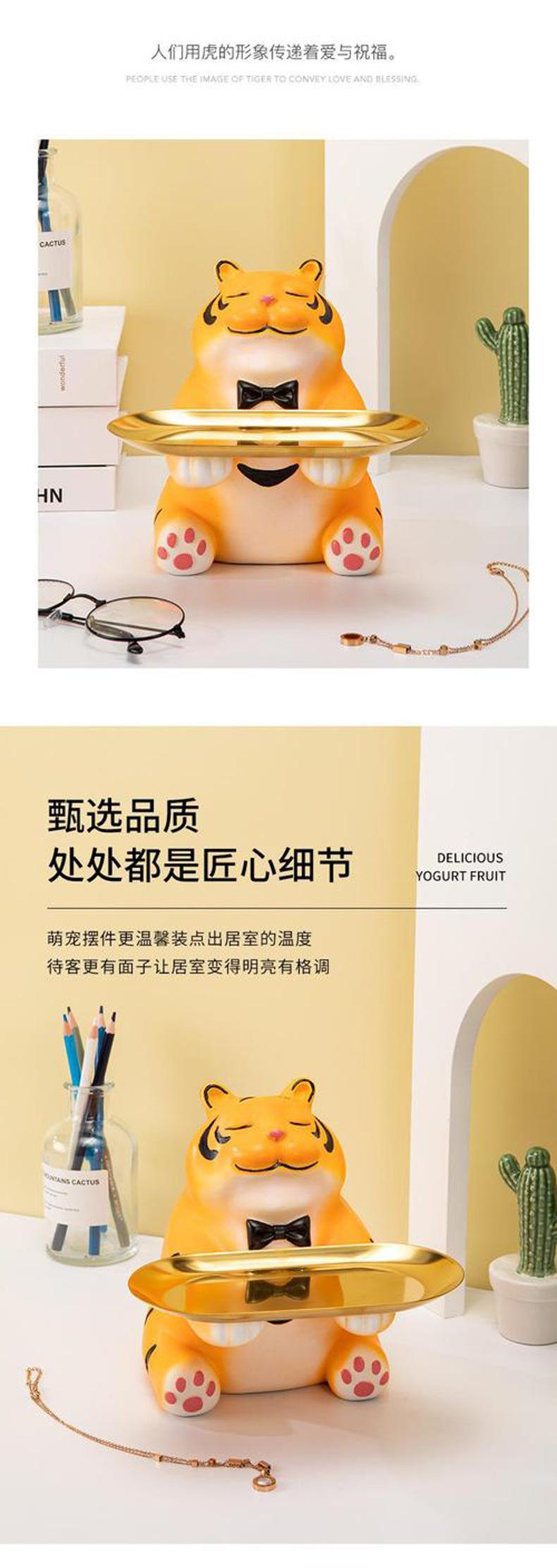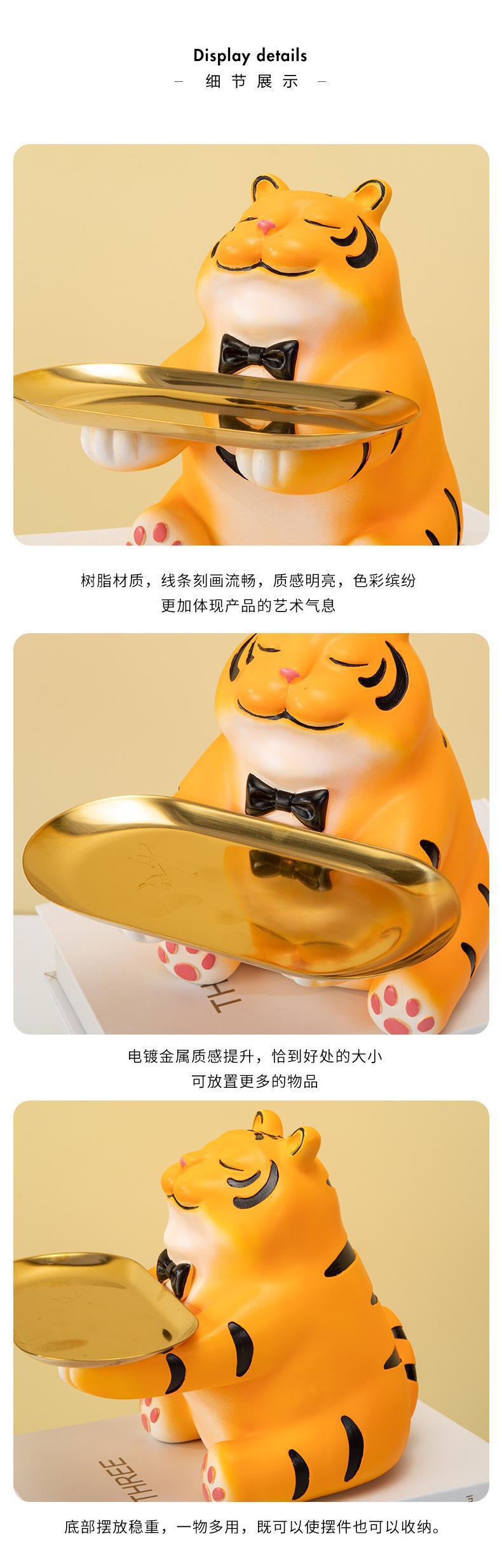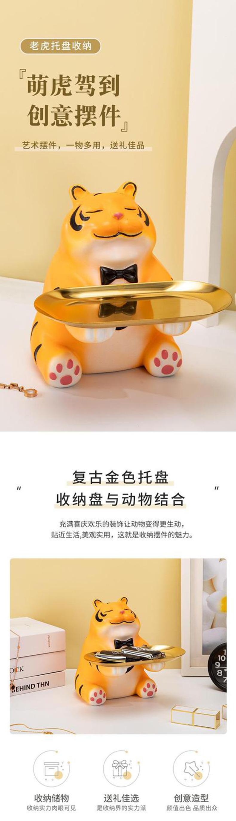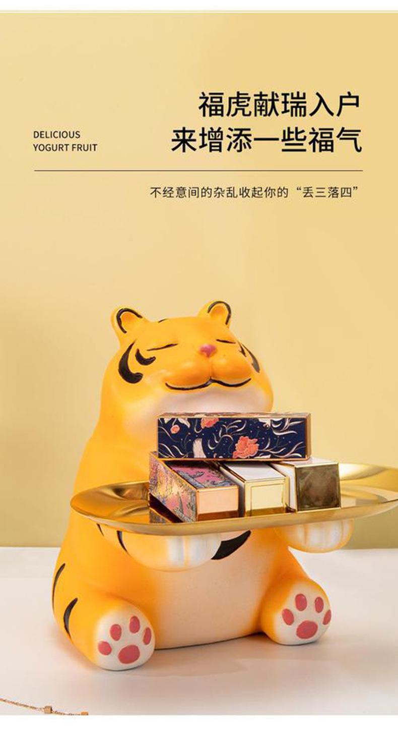 Bandeja de almacenamiento de llaves para la entrada del hogar con forma de tigre, creativa y linda, decoración suave, artesanías, decoración para el escritorio de la sala de estar