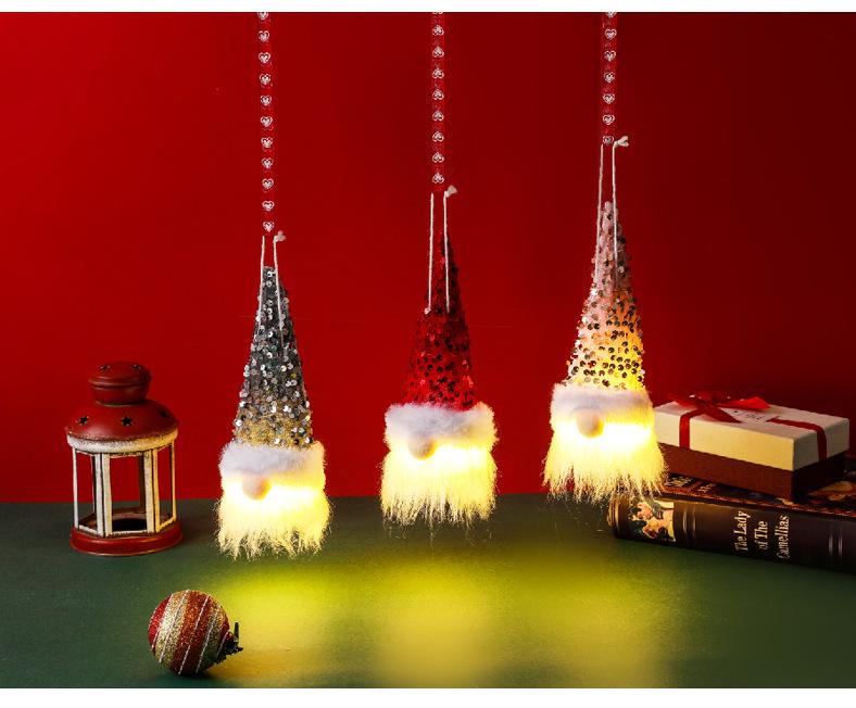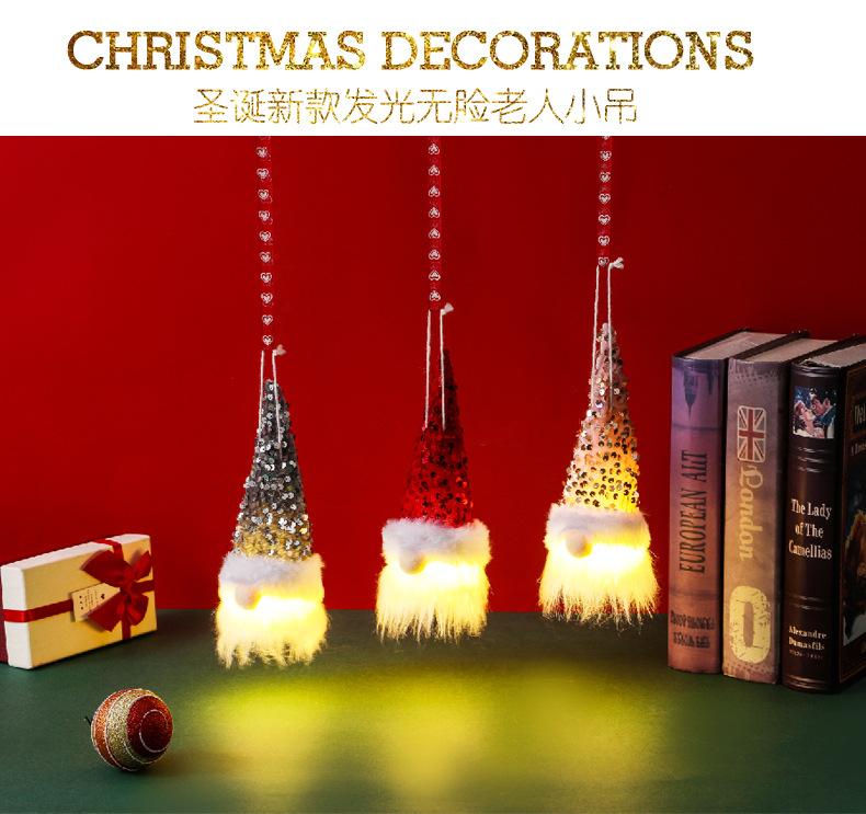 Nuevas decoraciones navideñas Anciano del bosque con colgante de luz muñeco sin rostro luminoso pequeños adornos colgantes para el árbol