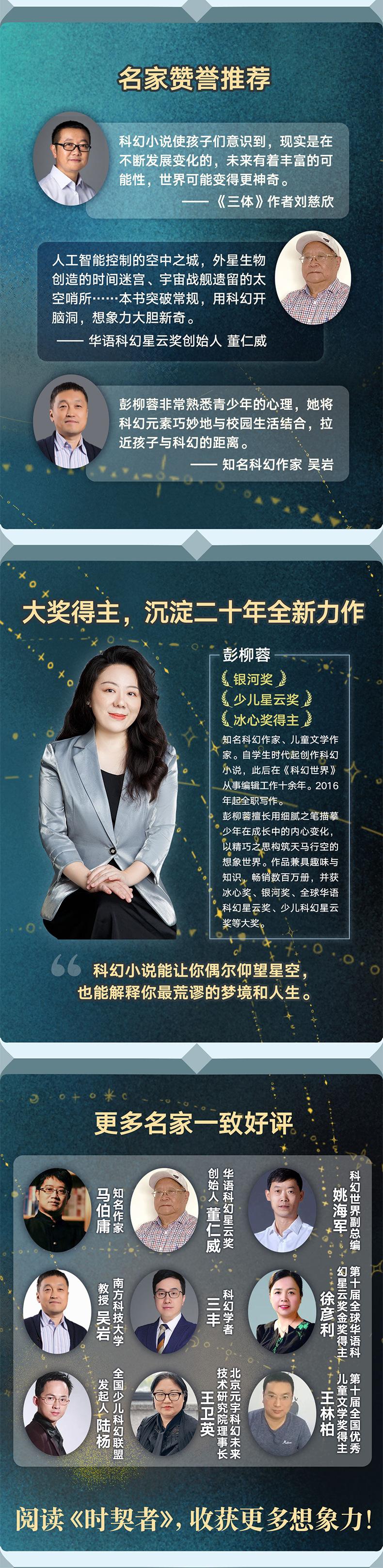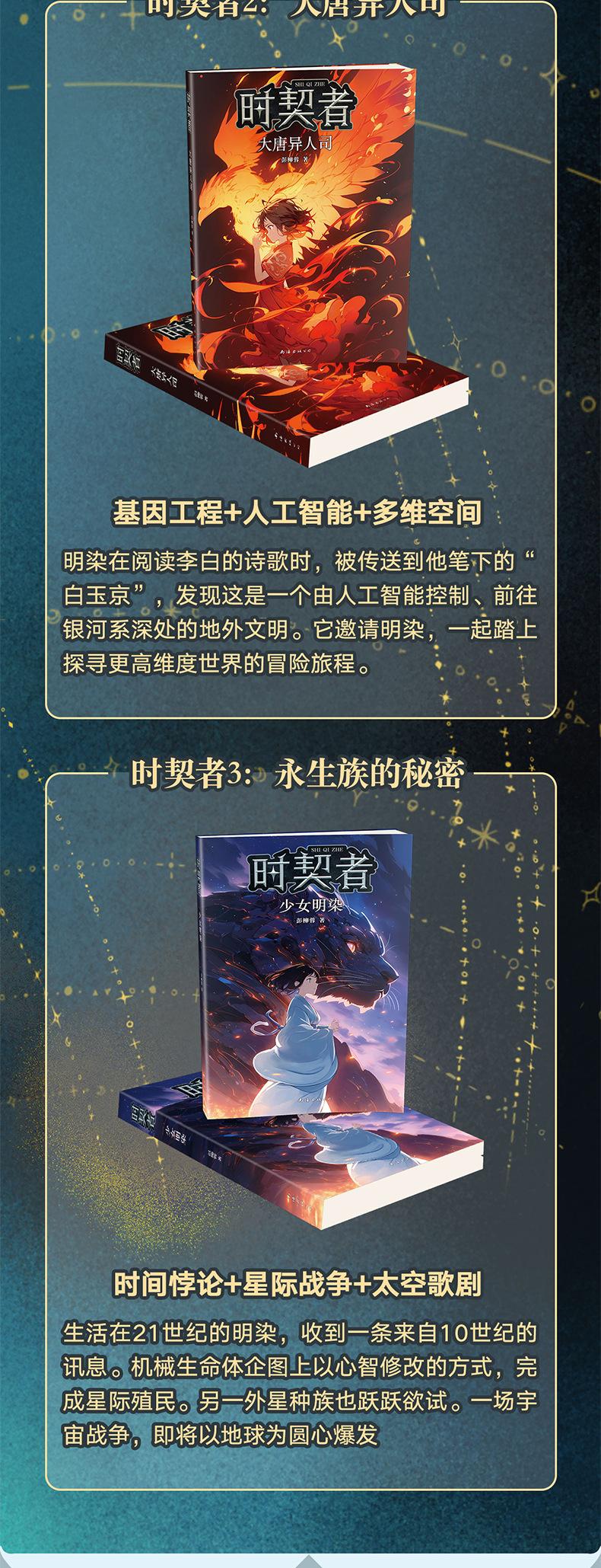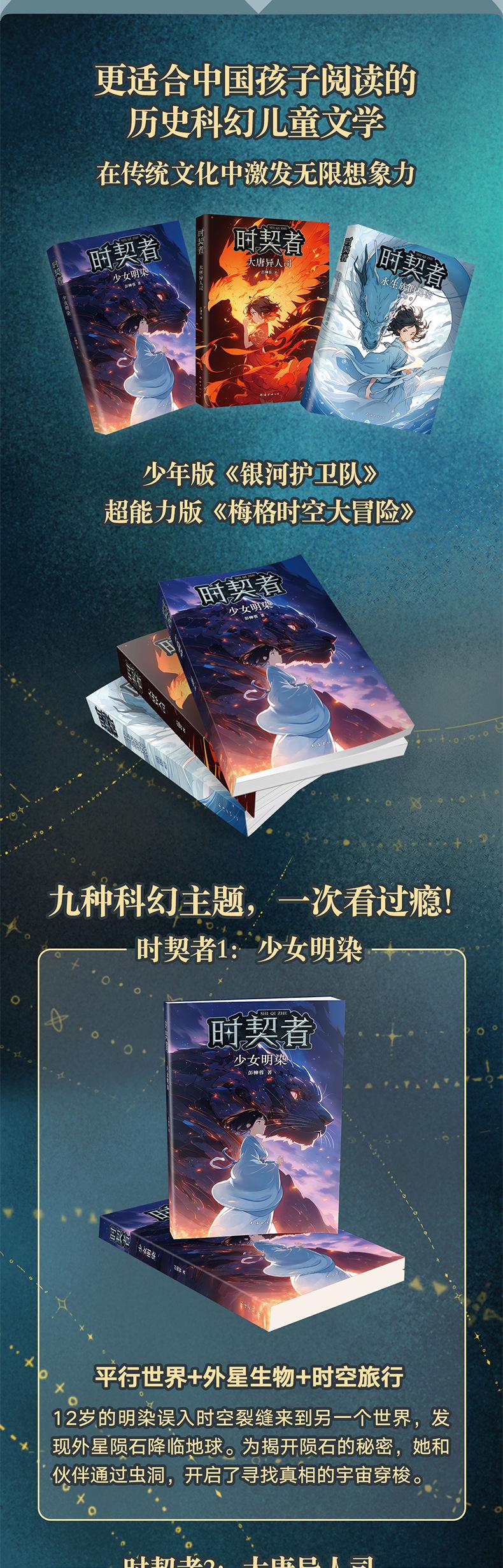 La serie El Contratista del Tiempo es una nueva obra de ciencia ficción creada especialmente para adolescentes por Peng Liurong, un escritor conocido y ganador del Premio Nebula Infantil. Esta serie de libros consta de tres volúmenes, a saber, "Chica Mingran", "División Alienígena de la Dinastía Tang" y "Secretos de los Inmortales". Los nueve elementos de ciencia ficción de mundos paralelos, entrelazamiento cuántico, viaje en el tiempo, ingeniería genética, inteligencia artificial, espacio multidimensional, paradoja temporal, guerra interestelar y ópera espacial están integrados en la historia. Se adopta el estilo de escritura de razonamiento de aventura, el suspenso está entrelazado y la trama se invierte una tras otra. El lenguaje es fácil de entender y el texto tiene un encanto clásico como la pintura de pincel fino, que es maravilloso y vale la pena leer.