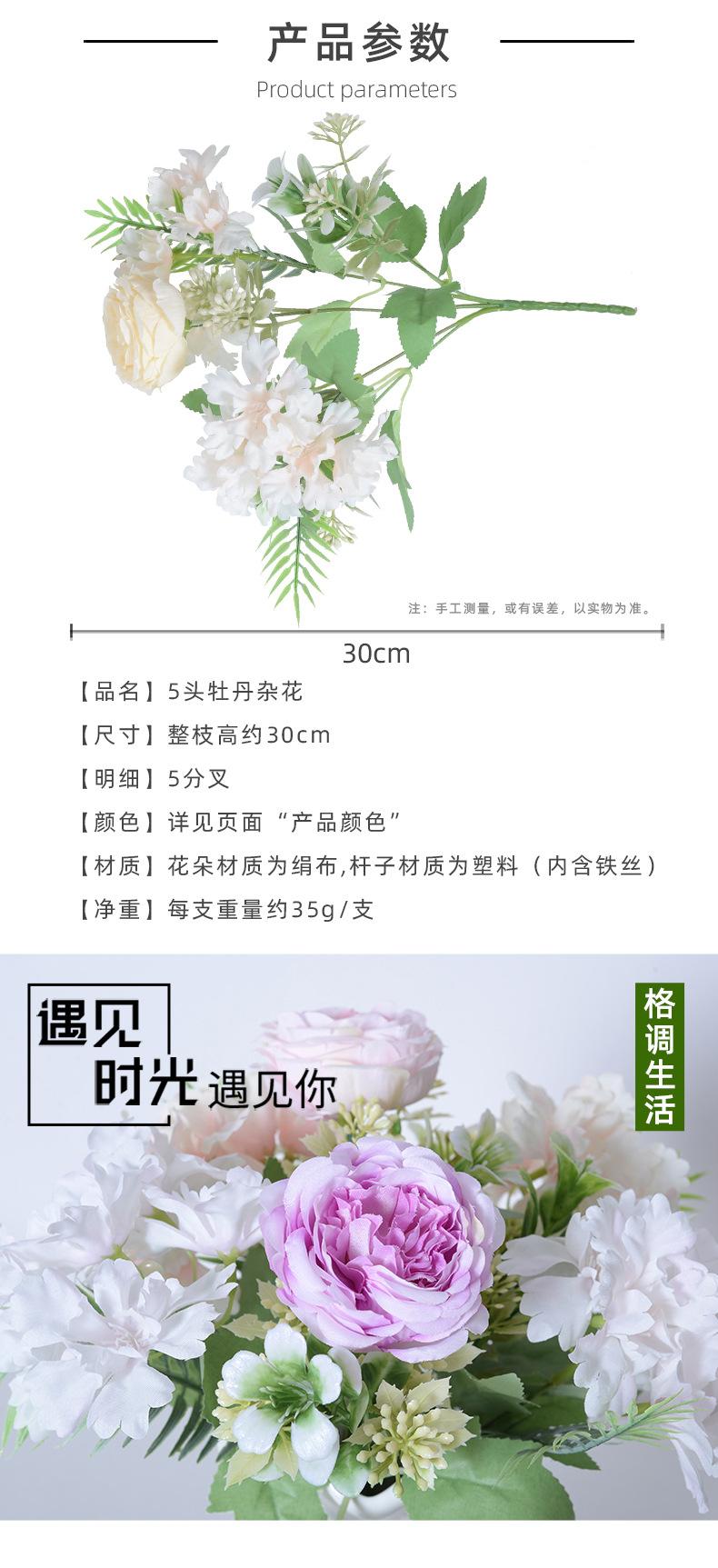 Ramo de simulación de flor de peonía de 5 cabezas ins boda decoración del hogar fotografía flor pequeña flor falsa ramo de rosa artificial