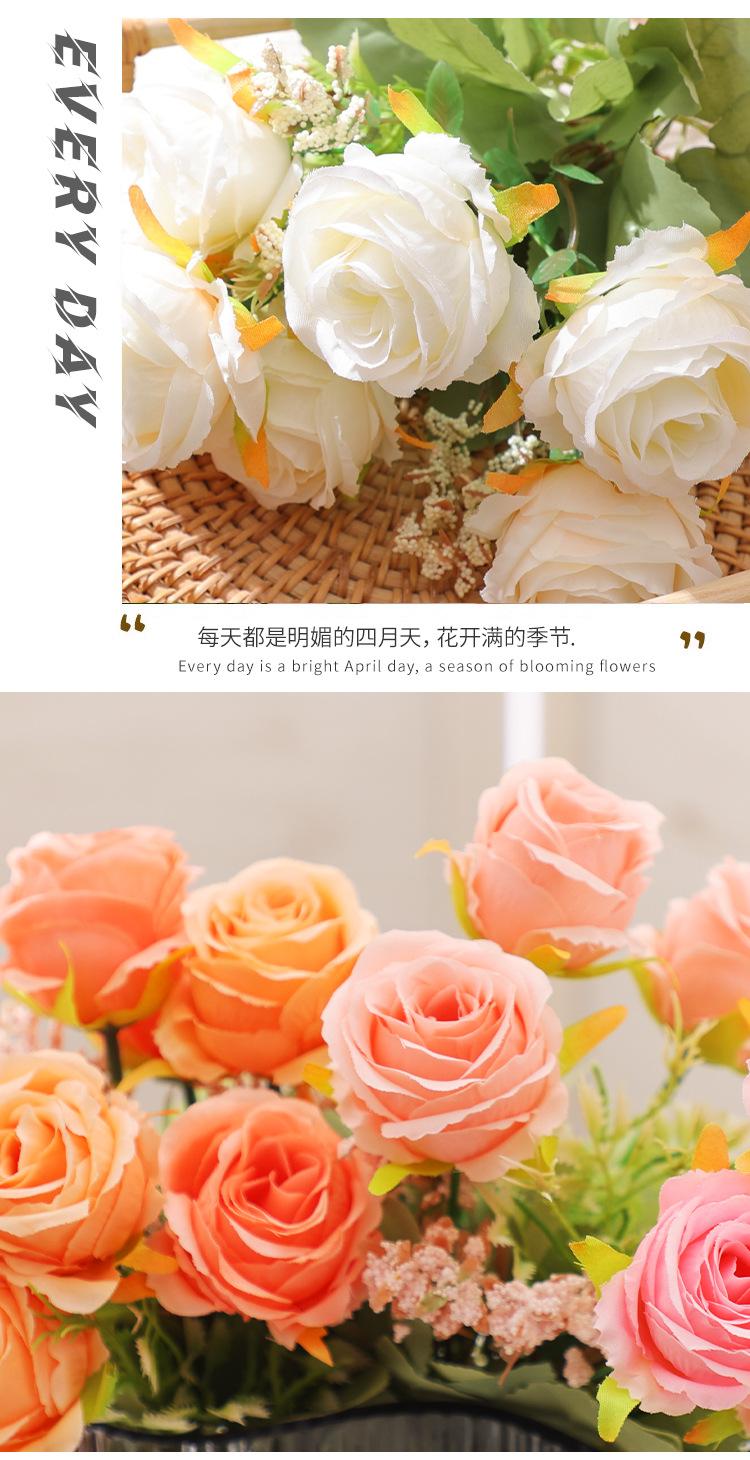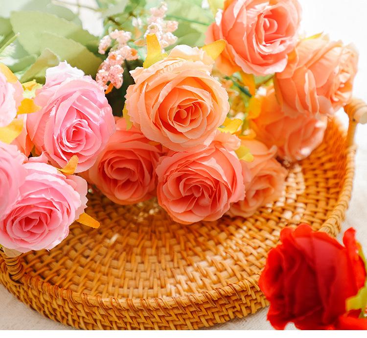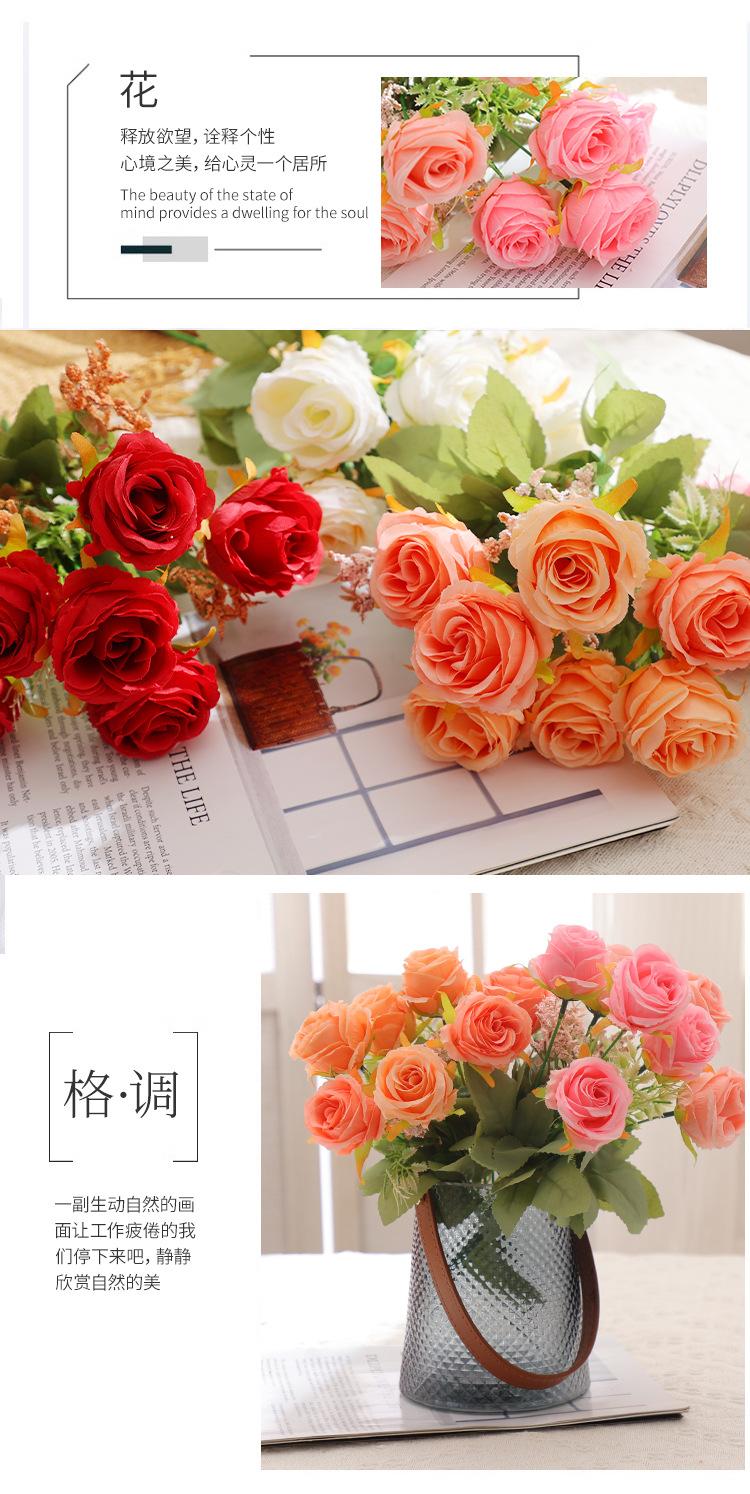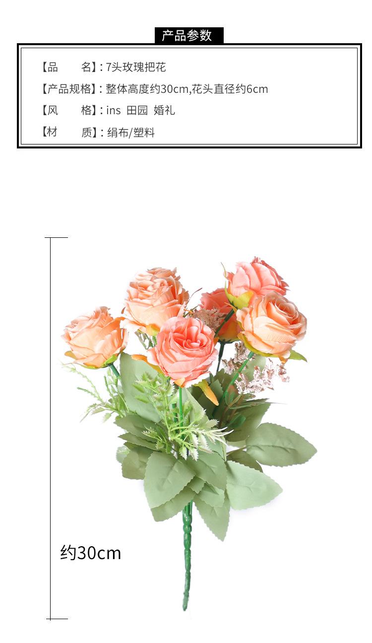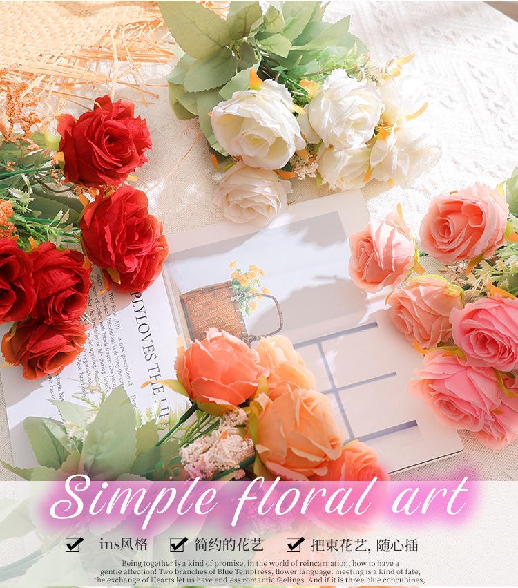 Ramo de rosas de simulación de 7 cabezas, accesorios de fotografía, decoración de mesa, pared de flores moderna simple, boda, diseño de hotel, flores