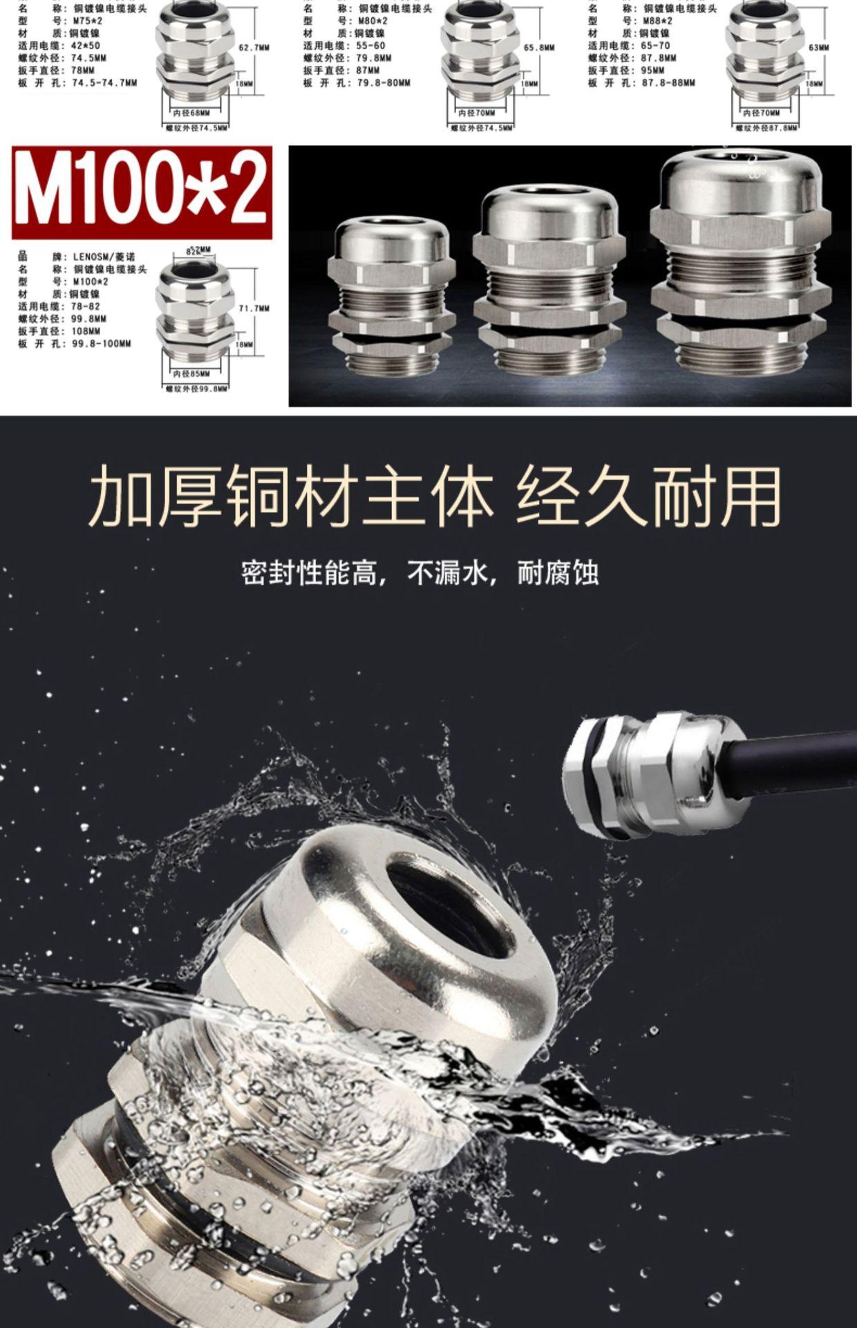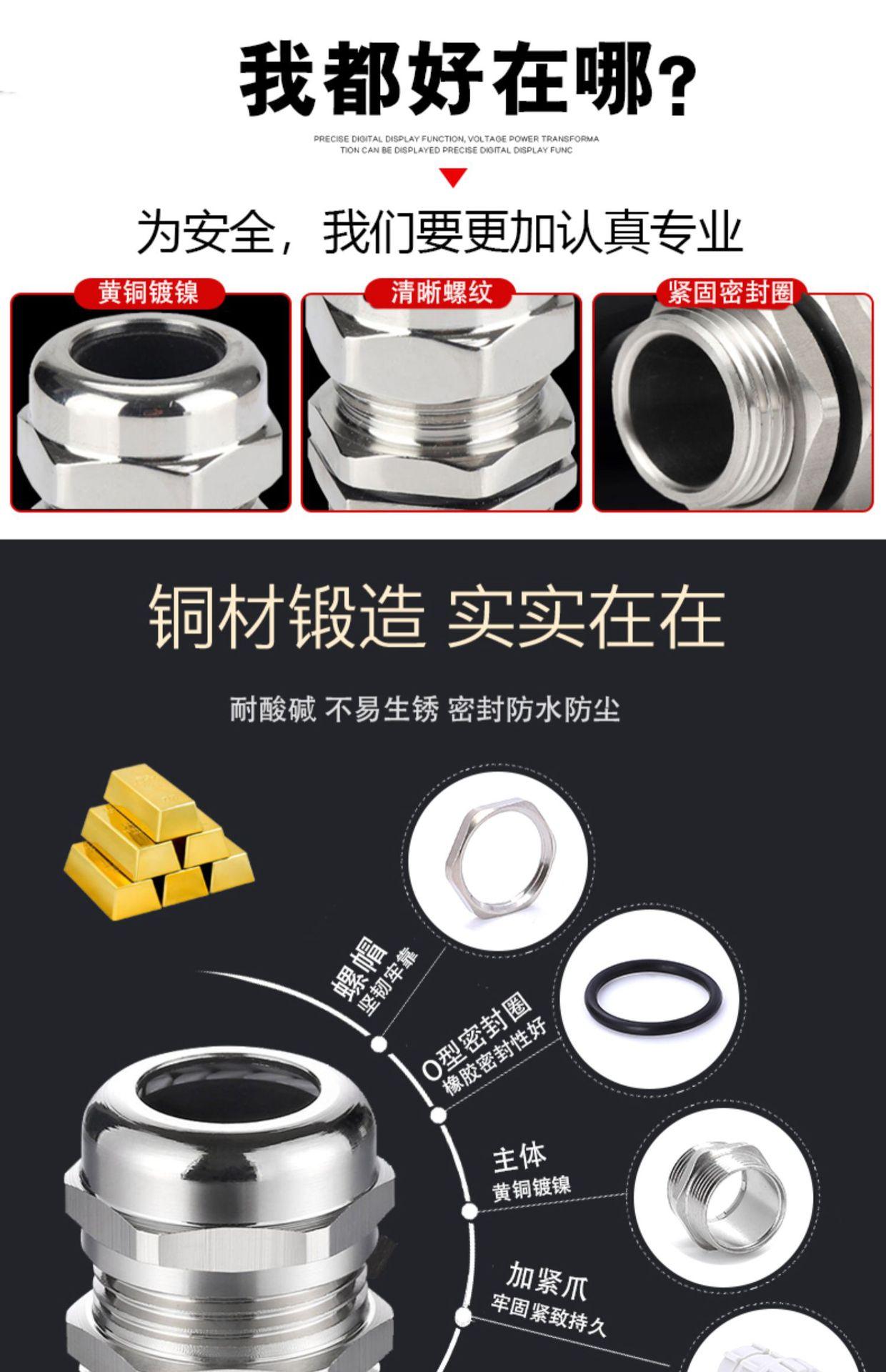 M12/M16/M18M20/M25/M36 Conector Metálico para Cable Impermeable Cabeza de Prensaestopas con Bloqueo Cabeza de Fijación Cobre Niquelado