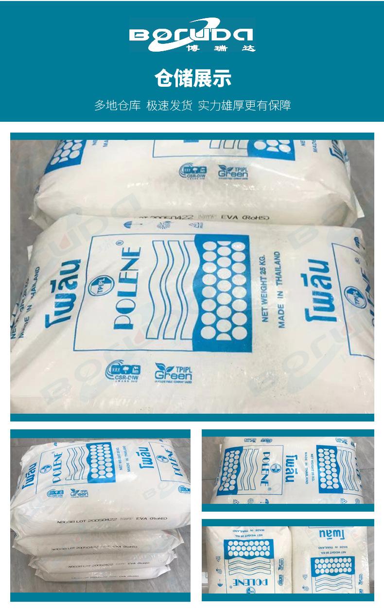 1) La resina EVA se caracteriza por buena suavidad, elasticidad similar al caucho, buena flexibilidad a -50°C, buena transparencia y brillo superficial, buena estabilidad química, buena resistencia al envejecimiento y al ozono, y no toxicidad. Tiene buena miscibilidad con rellenos y buena colorabilidad y procesabilidad de moldeo.