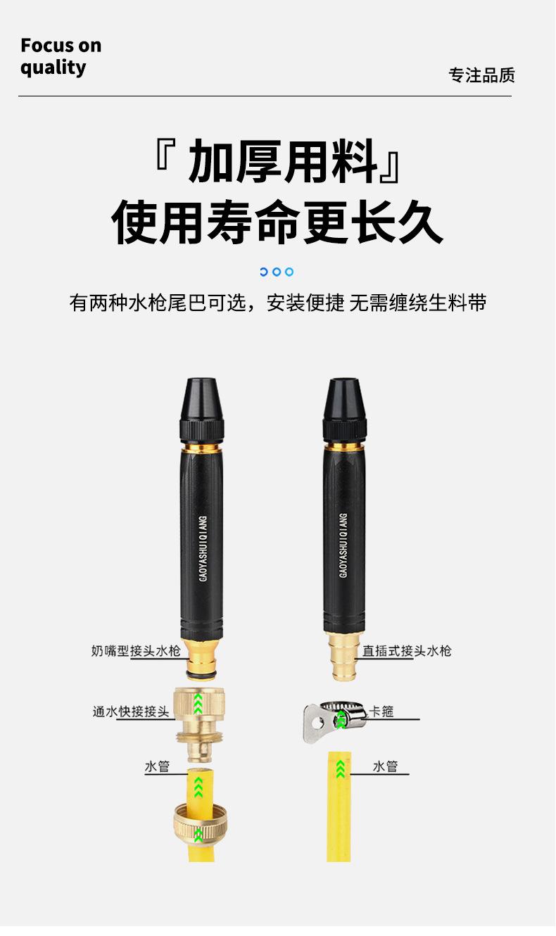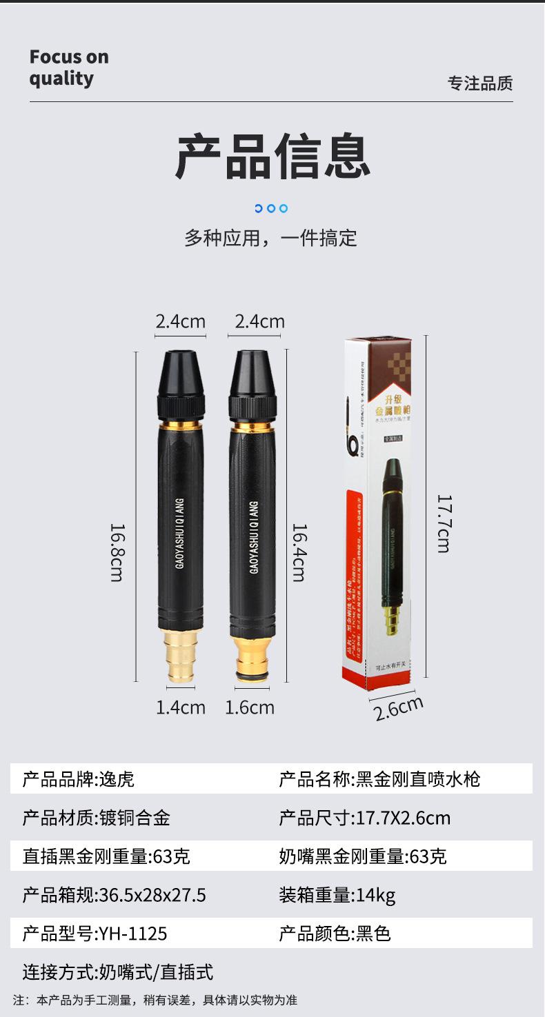 Suministro Directo de Fábrica Niple de Aleación Cabezal de Pistola de Agua de Rociado Directo Pistola de Agua para Lavado de Autos Boquilla de Cabezal de Pistola de Agua de Aleación Diamante Negro