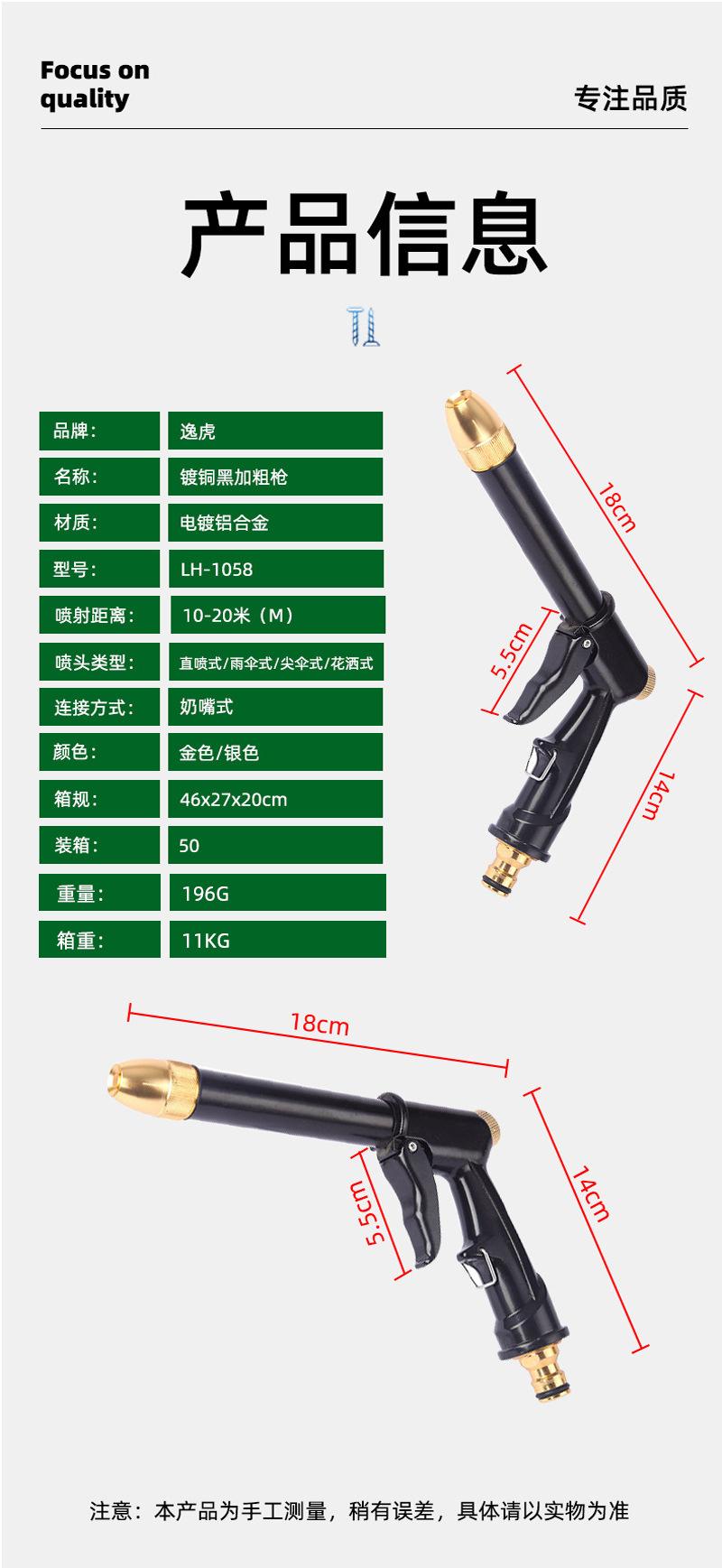 Suministros del Fabricante Pistola de Agua para Lavado de Autos de Alta Presión, Herramienta Multifuncional para Lavado de Autos para Hogar y Jardín, Pistola de Pulverización con Varilla Gruesa Enchapada en Cobre Negro