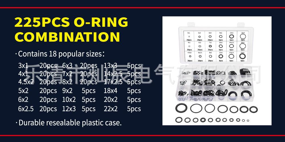 PD:Las especificaciones de este producto son: D2005-225PCS combinación de juntas tóricas de caucho nitrilo negro en caja