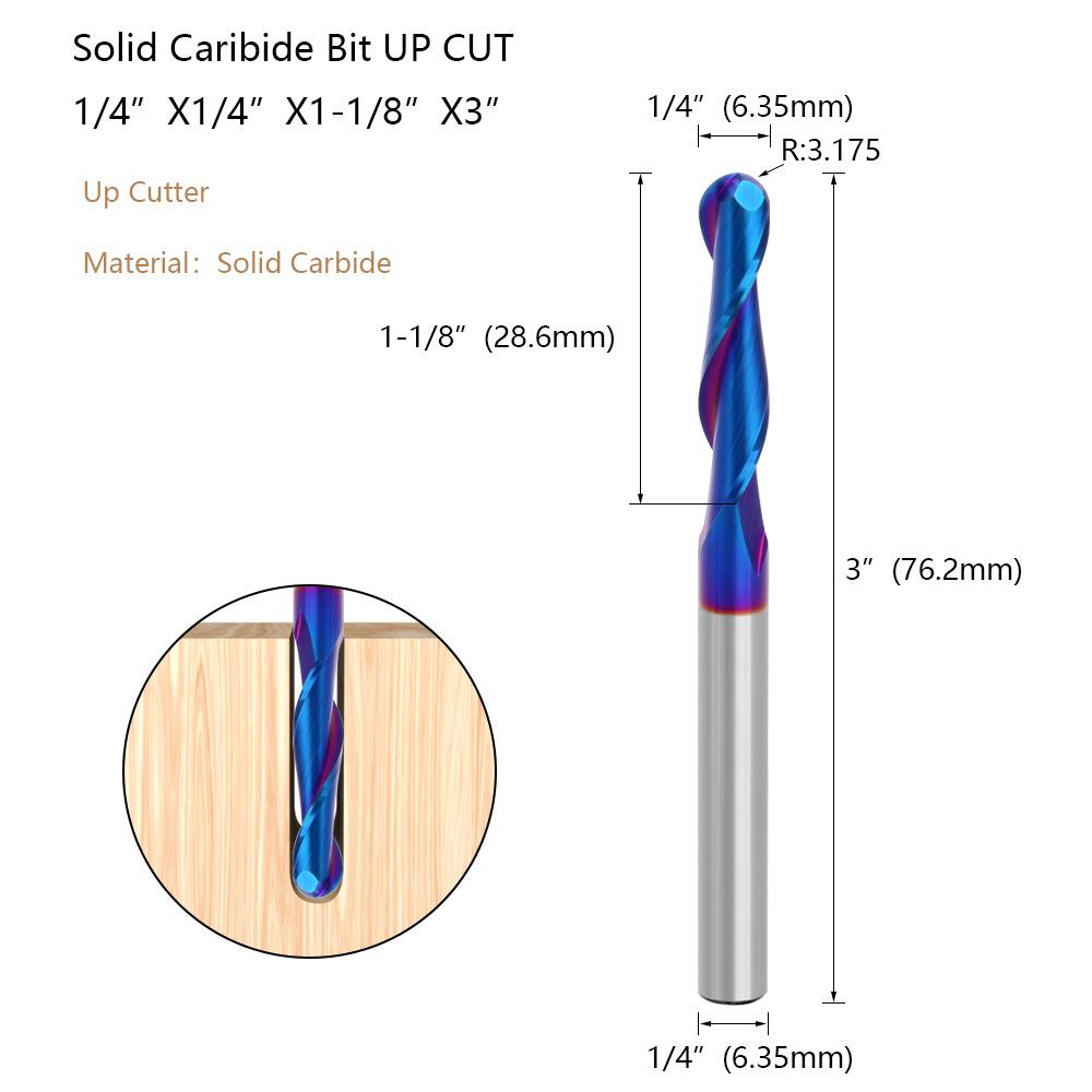 Los mangos de las fresas para carpintería incluyen: 3 mm, 6 mm, 1/4" (6,35 mm), 8 mm, 12 mm, 1/2" (12,7 mm)