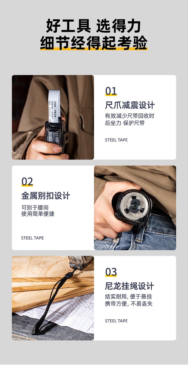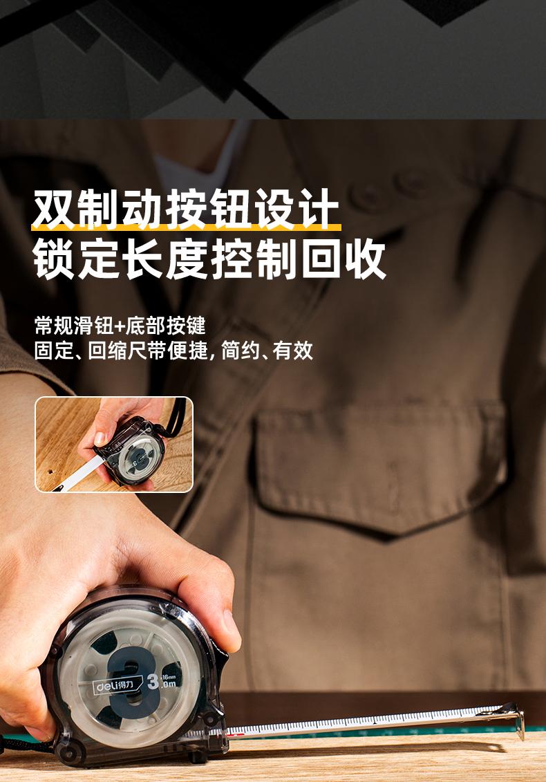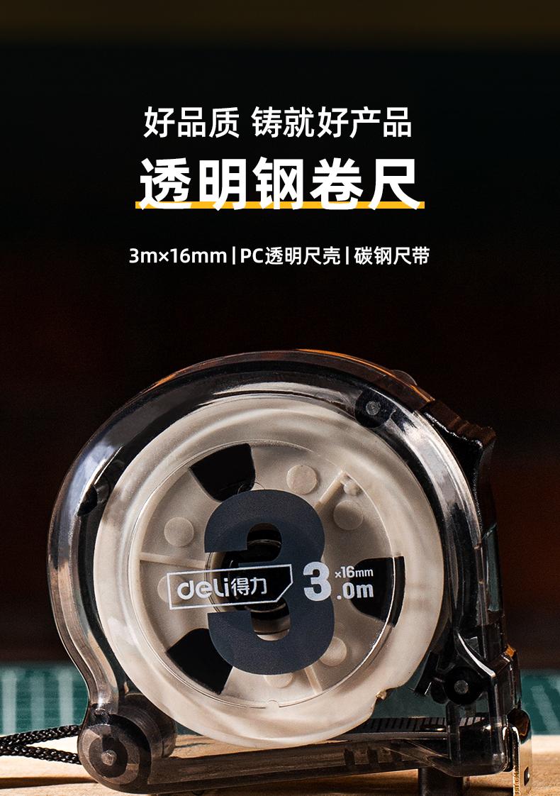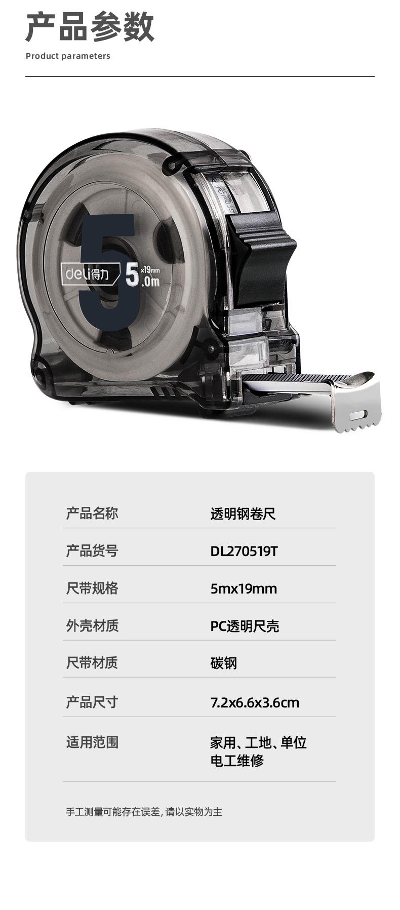Cinta de acero Deli de acero inoxidable transparente engrosada dura anticaída caja regla 3/5 metros alta precisión 7,5/10 metros