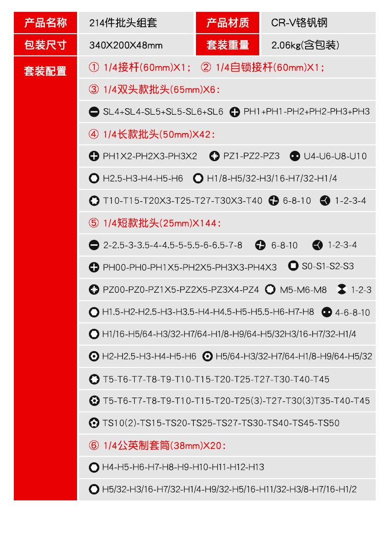 214 pieces batch head suit