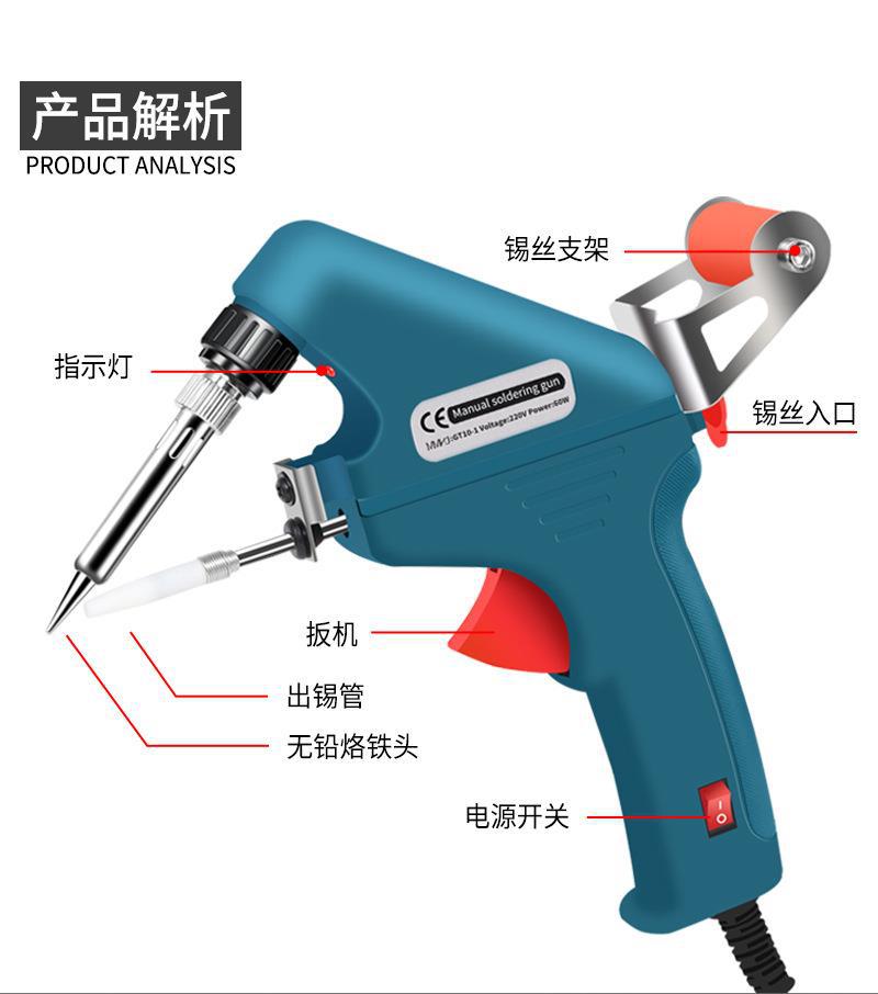 Nueva pistola de soldar portátil con calentamiento interno transfronterizo de 100 W y 110 V (EE. UU.). y juego de plancha eléctrica con alimentador automático de hojalata de calibre europeo
