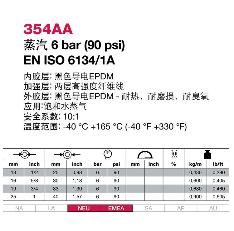 Suministro doméstico Afagama Alfagomma tubería industrial tubería de agua caliente tubería de vapor tubería de alta temperatura 354AA