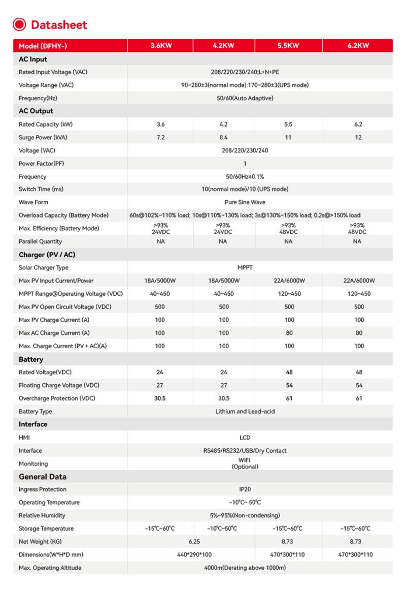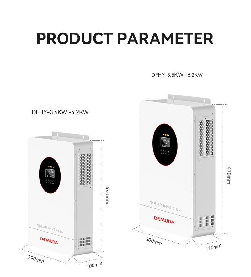 Están disponibles los inversores híbridos solares de almacenamiento de energía Demuda de 3.6kw 4.2kw 5.5kw 6.2kw, admiten logotipo / color / embalaje personalizados, etc., Bienvenido a contactar con nuestros ingenieros para los requisitos de diseño.