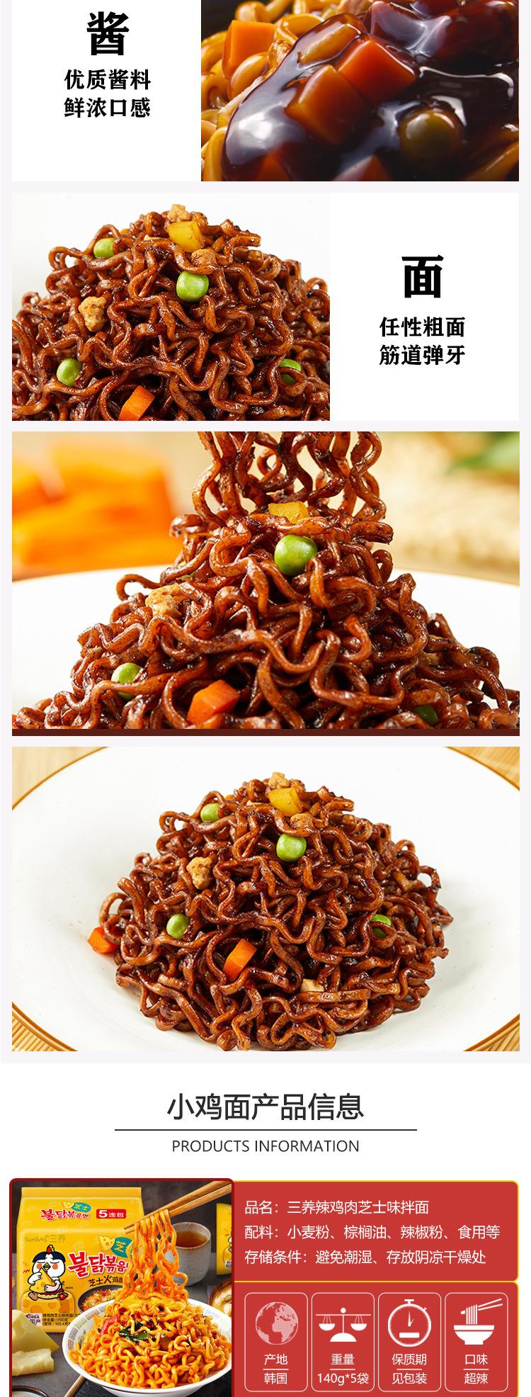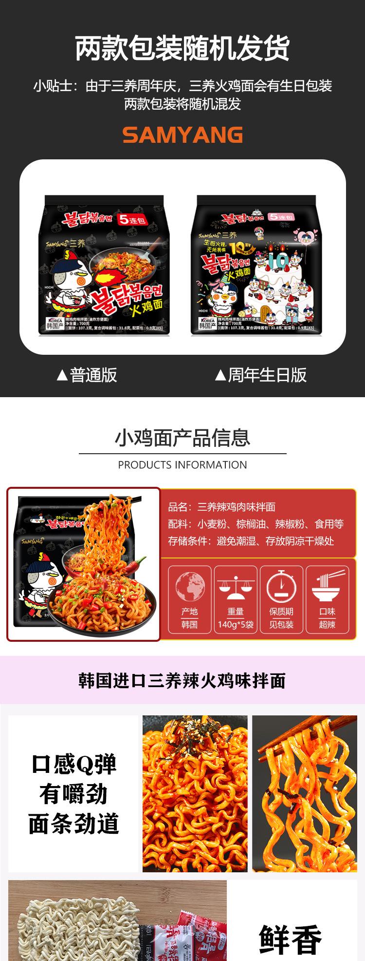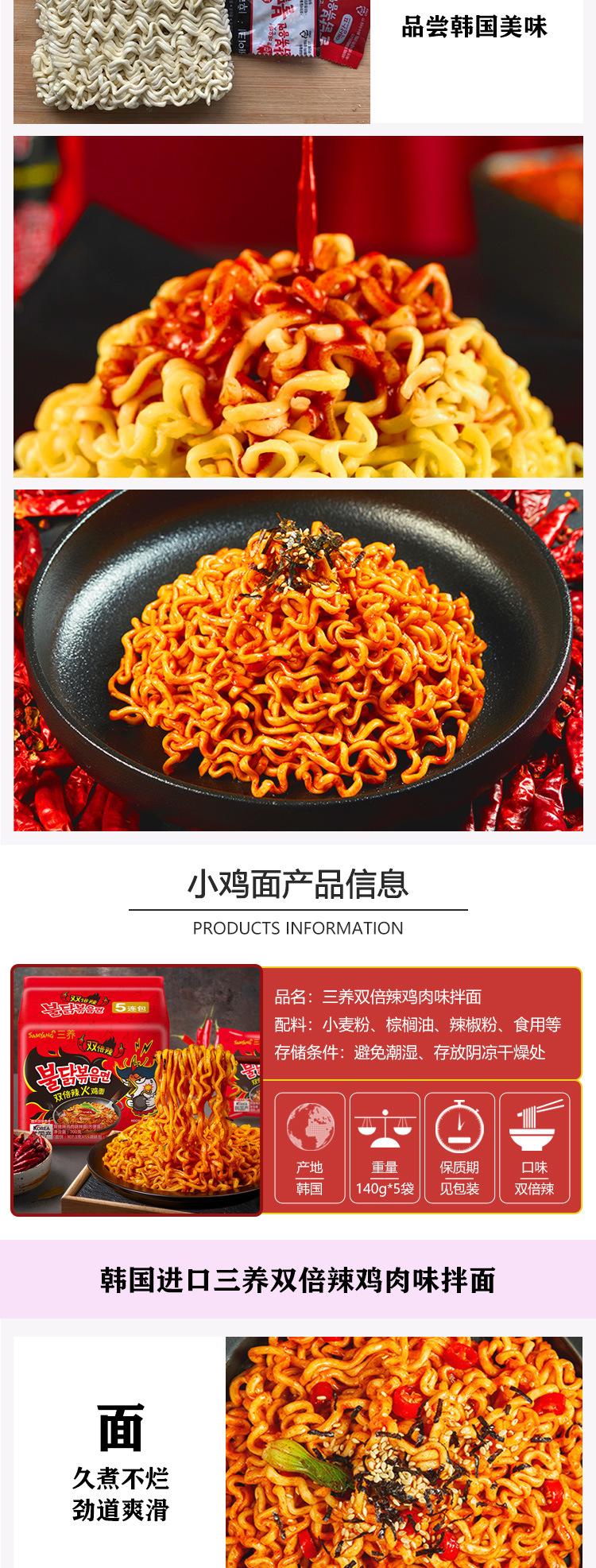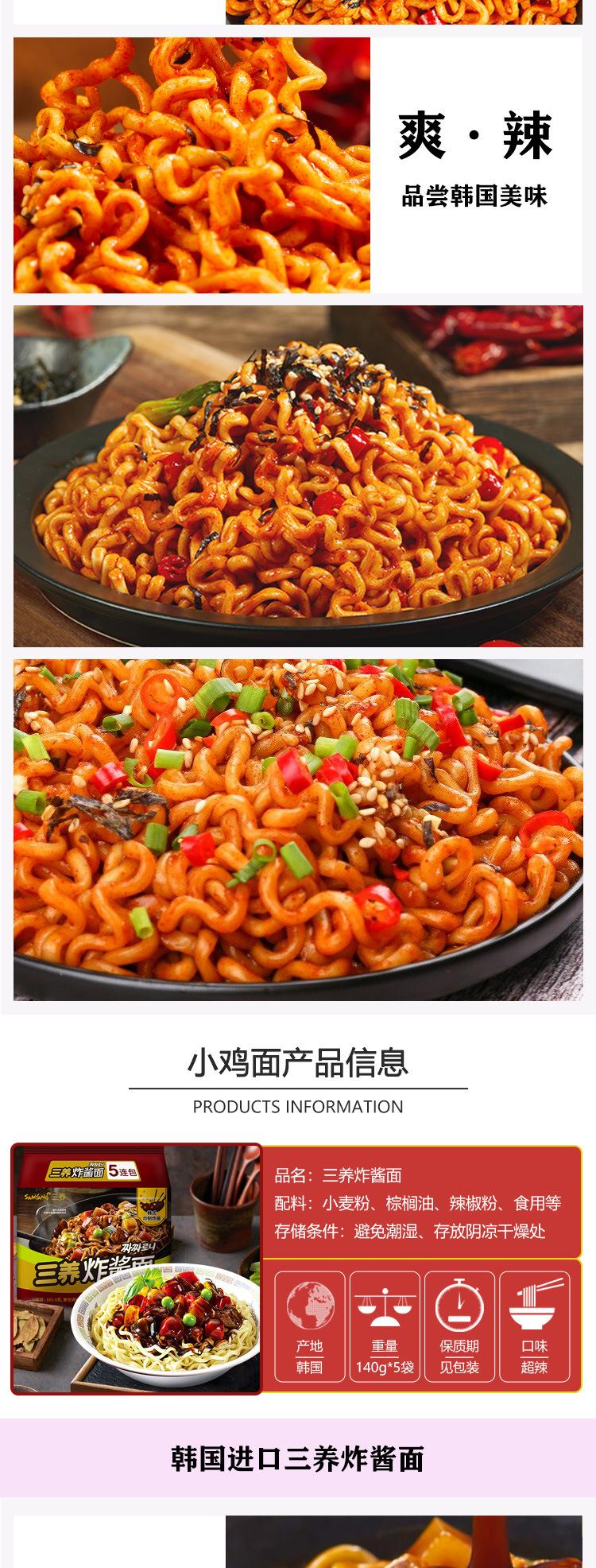 Fideos instantáneos importados de Corea del Sur, tres fideos de pavo súper picantes con sabor a pollo picante, 140 g, fideos instantáneos de celebridades de Internet, 40 bolsas / caja