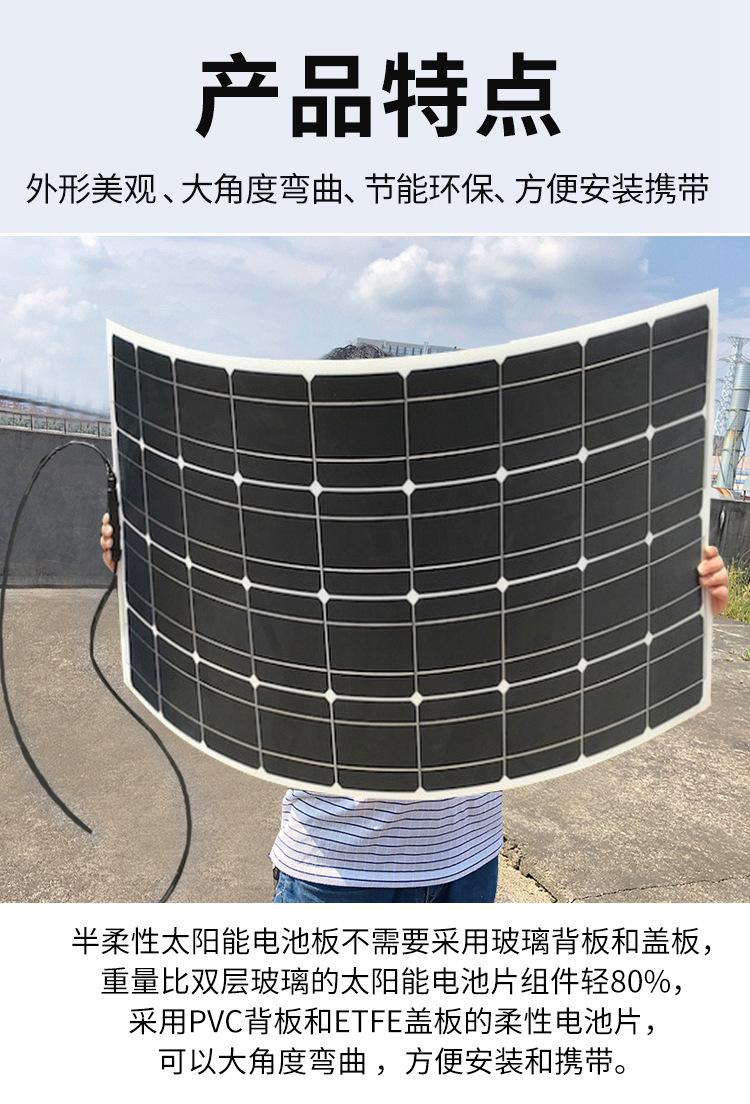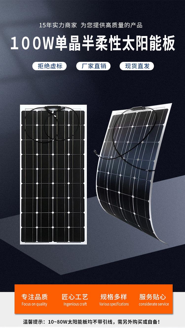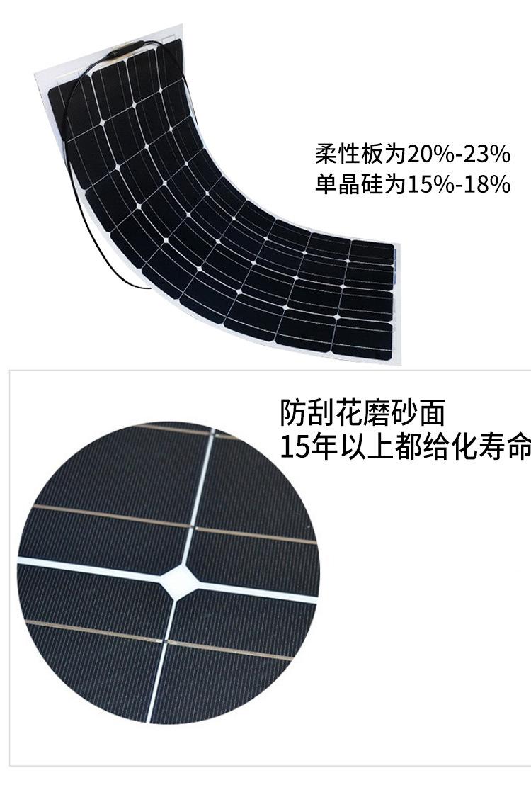 Panel Solar Flexible Silicio Monocristalino 100W Panel de Generación de Energía Fotovoltaica Panel Solar de Techo Carga 12V/24V